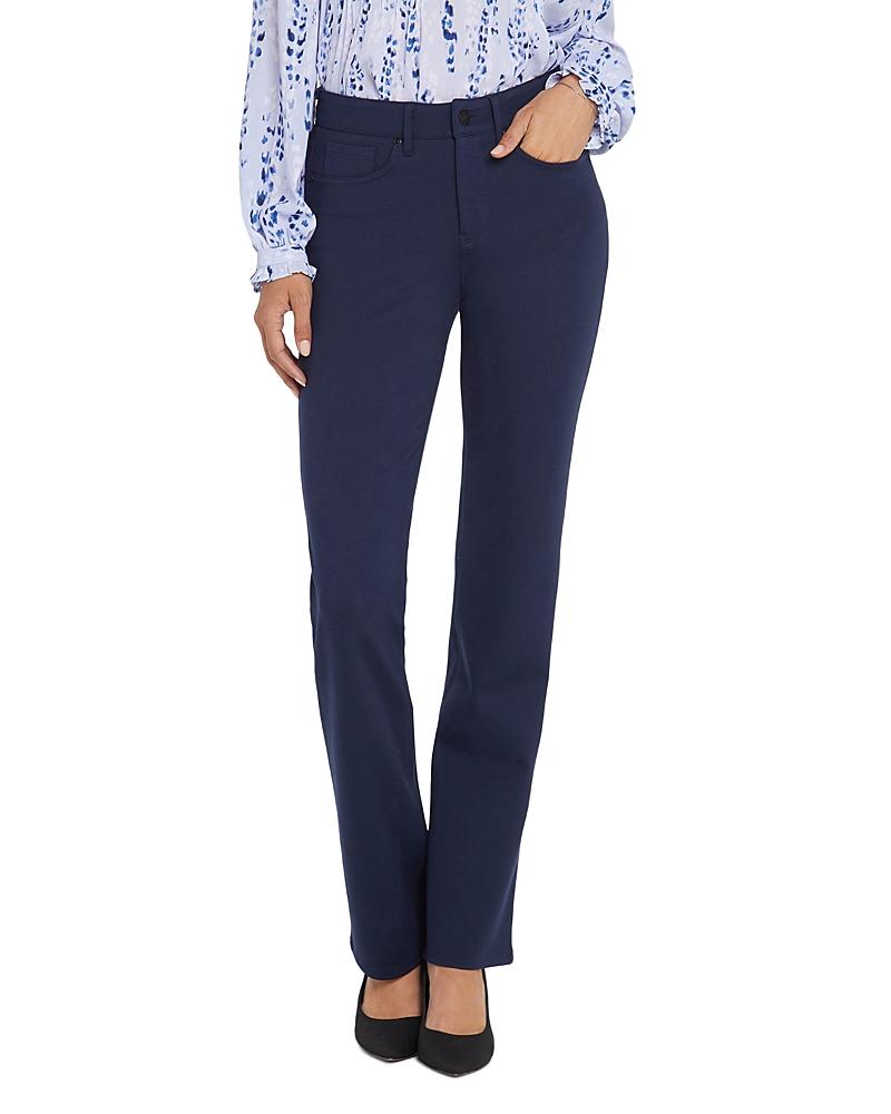 From NYDJ Petite, these pants feature:Stretch ponte fabricationStraight leg silhouettemid rise waistbandBelt loops5-pocket styleButton and zip fly closureApprox. 30 inseam; 15.5 leg opening; 9.25 front rise; 14.75 back riseViscose/nylon/elastaneMachine wash/tumble dryImported.