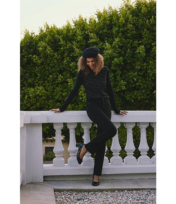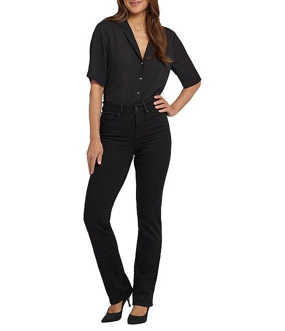From NYDJ, these jeans feature: Stretch denim fabrication High rise Belt loops 5 pocket styling Straight leg silhouette Full length Front button and zipper closure Approx. 32" inseam, 16" leg opening Cotton/polyester/lyocell/elastane Machine wash cold/line dry Imported.