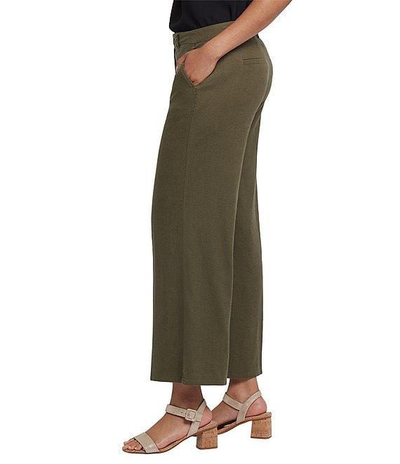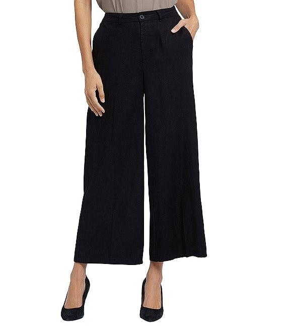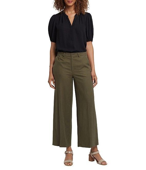 From NYDJ, these pants feature: Stretch linen blend fabrication Wide leg silhouette Belt loops Cropped length 4 pocket styling Front button and zipper closure Approx. 27" inseam, 25" leg opening Linen/viscose/elastane Machine wash Imported.