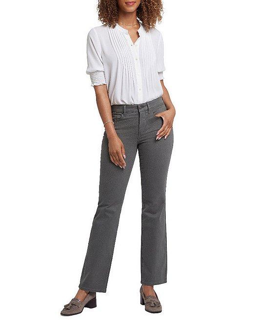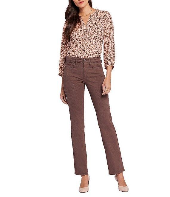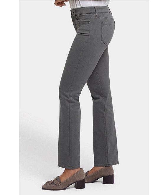 20123898 From NYDJ Petite, these jeans feature: Stretch denim fabrication Straight leg silhouette 5-pocket style Belt loops Button/zip fly ankle length Approx. 28" inseam, 15.5" leg opening, 9.25" front rise, 14.75" back rise Cotton/polyester/elastane Machine wash Imported.