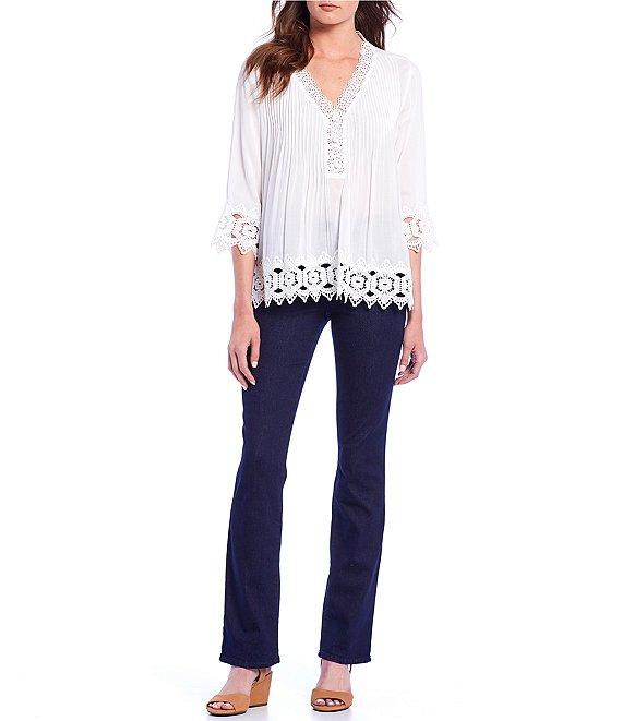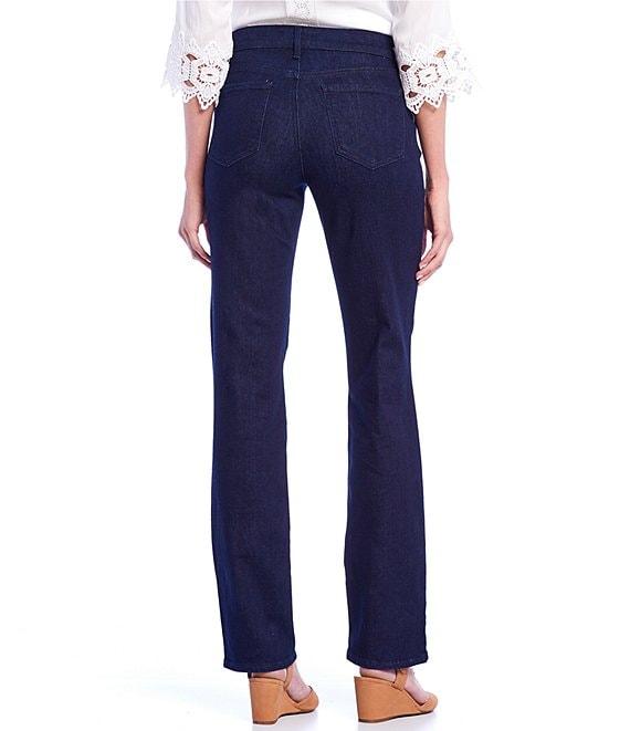 From NYDJ Petite, these jeans feature: Stretch denim fabrication Straight leg Belt loops 5-pocket style Button/zip fly Approx. 28" inseam, 15.5" leg opening, 9.25" front rise, 14.75" back rise Cotton/elastomultiester/lycra elastane Machine wash Imported.