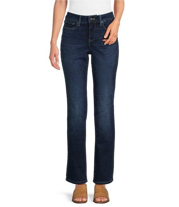 From NYDJ Petite, these jeans feature: Stretch denim fabrication Straight leg Belt loops 5-pocket style Button/zip fly Approx. 28" inseam, 15.5" leg opening, 9.25" front rise, 14.75" back rise Cotton/elastomultiester/lycra elastane Machine wash/line dry Imported.
