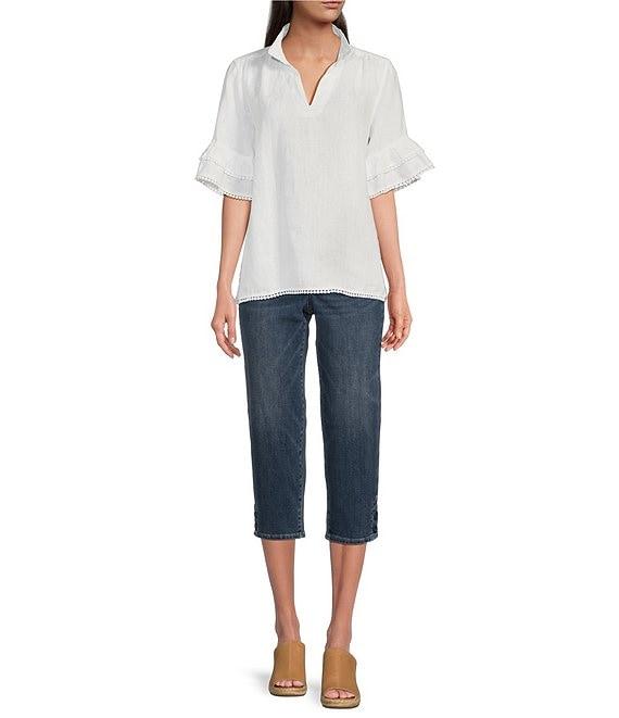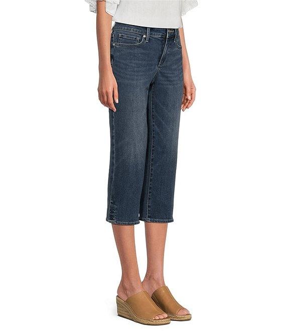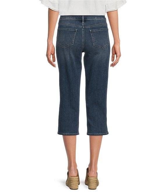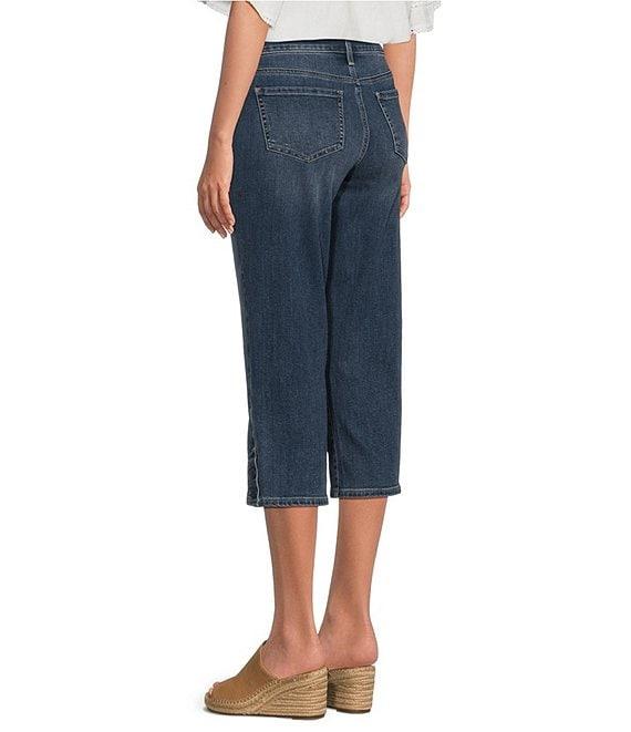 From NYDJ Petite, these jeans feature: Denim fabrication 5-pocket style Belt loops Straight hem with side button placket Crop length Button/zip fly closure Approx. 19" inseam; 15" leg opening; 9.25" front rise; 15.75" back rise Cotton/polyester/elastane Machine wash / line dry Imported.