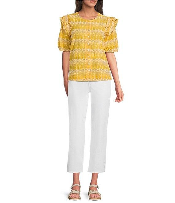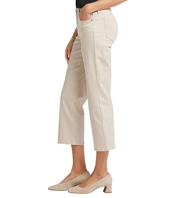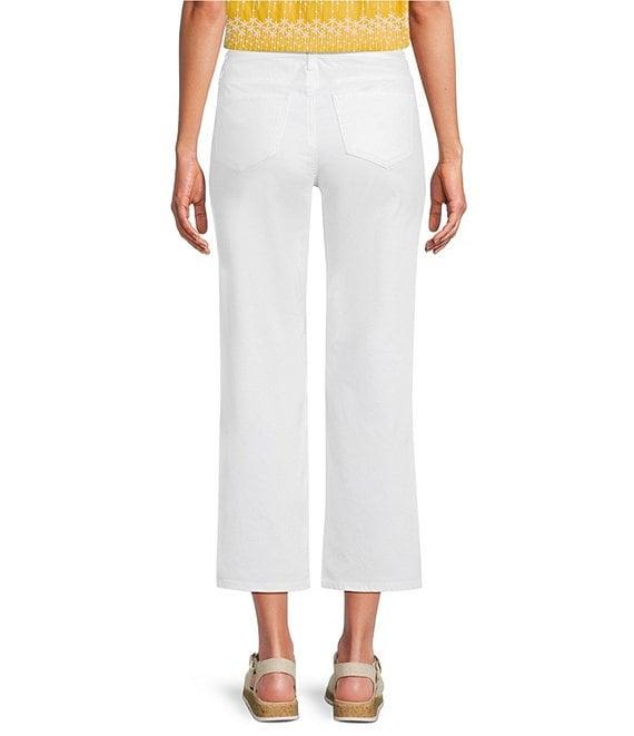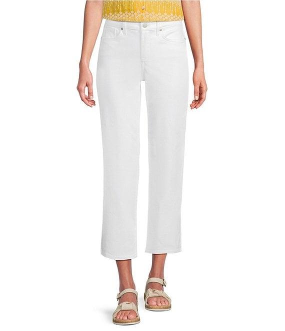 From NYDJ, these jeans feature: Straight leg silhouette Relaxed fit Belt loops NYDJ Lift Tuck® Technology uses a patented crisscross panel to flatten in the front, white curve-contouring construction flatters your backside Cropped length Approx. 25" inseam, 17.5" leg opening, 9.75" front rise, 15.25" back rise Front button and zipper closure Cotton/polyester/elastane Machine wash cold/line dry Imported.