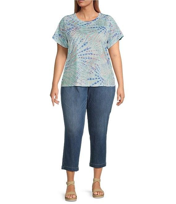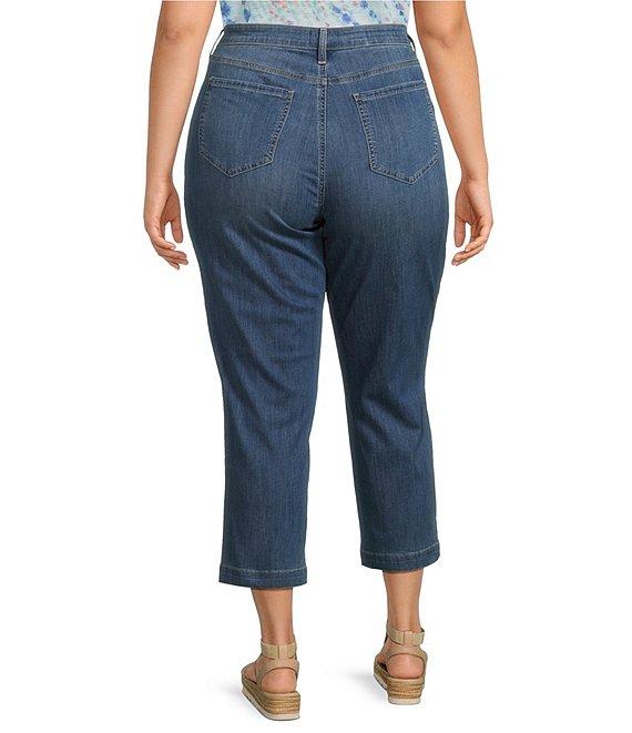 From NYDJ Plus, these jeans feature: Soft lightweight denim fabrication Cropped silhouette Belt loops Relaxed fit 5-pocket styling Lift tuck® technology No-gap higher rise that hits at the natural waist Exposed four-button fly Approx. 25" inseam, 17.5" leg opening, 12" front rise, 19.25" back rise Cotton/Tencel™ Lyocell/polyester/lycra® elastane Machine wash/line dry Imported.