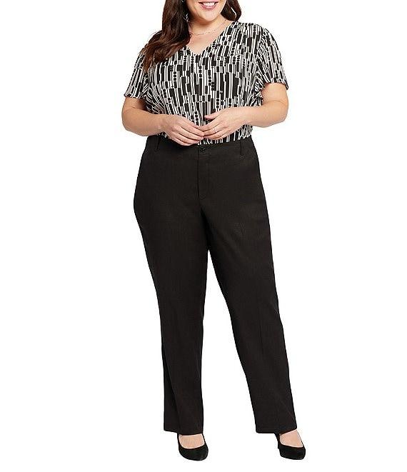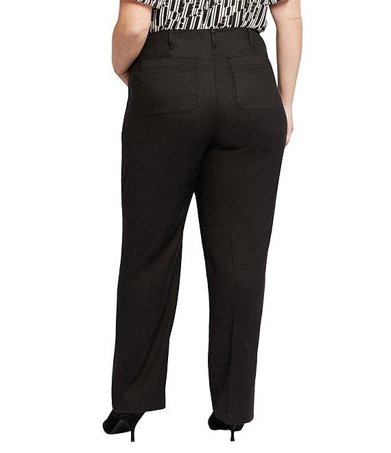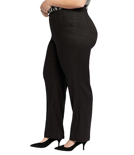 From NYDJ Plus, these pants features: Stretch linen fabrication Flat front silhouette High waist Straight leg Lift tuck technology 4-pocket style Belt loops Button/zip fly closure Approx. 31" inseam; 19" leg opening Approx.12" front rise; 20" back rise Linen/viscose/elastane Machine wash/line dry Imported. Our best-selling Marilyn Straight silhouette meets our deliciously cool and comfortable stretch linen. NYDJ's Marilyn Straight Pants in Plus Size in Stretch Linen are a sophisticated warm-weather alternative to your favorite jeans. A high waist with a clean waistband and a versatile straight-leg design make them so flattering and easy to wear, while our Lift Tuck Technology enhances the fit even more by using a proprietary slimming panel to shape and support your curves. Finished with a zip fly and button closure, front slash pockets and back patch pockets.