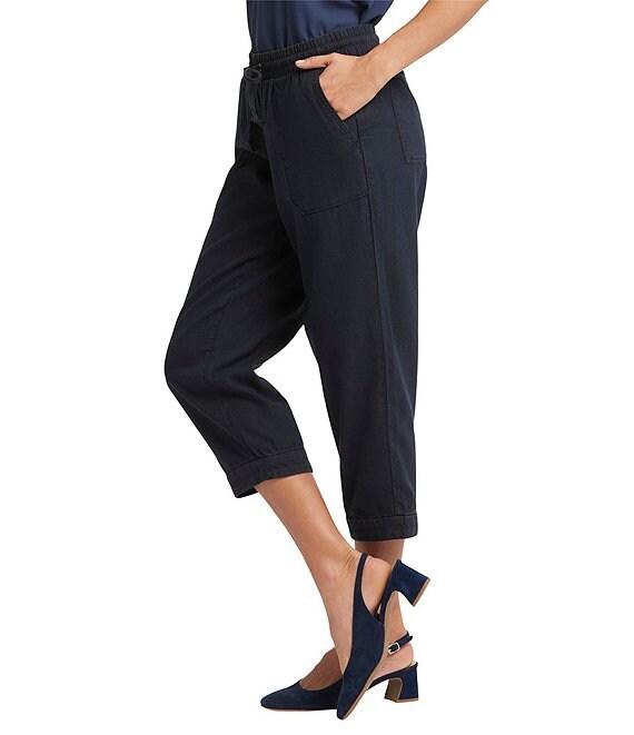 From NYDJ, these pants feature: Denim fabrication Cargo silhouette Front cargo, back patch functional pockets NYDJ Lift Tuck® Technology uses a patented crisscross panel to flatten in the front, white curve-contouring construction flatters your backside Relaxed fit Front drawstring closure Approx. 24" inseam. 15" leg opening Cotton Machine wash Imported.