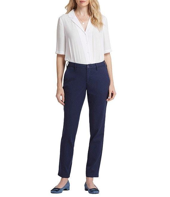 From NYDJ, this pant features: Stretch twill fabrication Slim leg silhouette Mid rise waistband Side front pockets & back welt pockets Lift Tuck® Technology Zipper fly with hook closure Approx. 31" inseam, 15.25" leg opening, 9.75" front rise, 15.25" back rise Tencel lyocell/cotton/elastane Machine wash/line dry Imported.