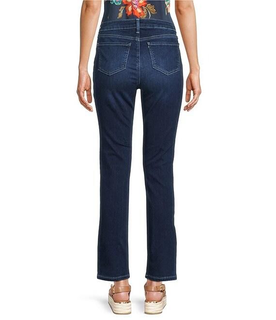 From NYDJ, these jeans feature:slim leghigh rise waistbelt loops 5-pocket stylingtonal stitch detail straight hemline front button and zipper fly closureapprox. 31" inseamcotton/polyester/lyocell/elastomultiester/elastanemachine wash/line dry Made in the USA.NYDJ is the original slimming jean, designed with a superior fit that makes women look and feel amazing. We use premium denim with just the right amount of stretch — for comfort with no bagging — even between washings. Our Lift Tuck Technology® gives you gentle control in front while lifting and shaping in back. NYDJ offers all of this while adding something else as well...STYLE!