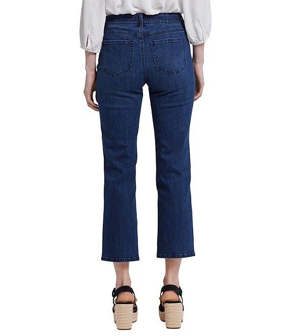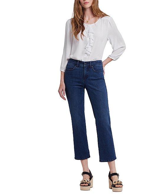 From NYDJ these jeans feature: Stretch denim fabrication Straight leg silhouette 5 pocket styling Ankle length Front zip and button closure Approx. 27" inseam; 15.5" leg opening; 9.25" front rise; 15.75" back rise Cotton/coolmax®/polyester/lycra/elastane Machine wash Imported.