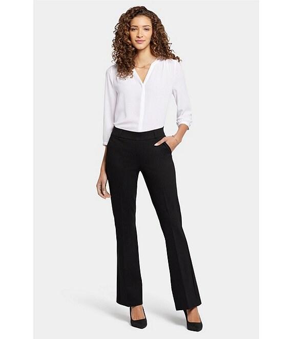 From NYDJ, these pants feature: Stretch Ponte fabrication Flare leg silhouette Flat front waistband Belt loops Front pockets Faux back welt pockets Pull-on construction Approx. 32" inseam, 22" leg opening, front rise: 9.75" back rise: 15.25" Viscose/nylon/elastane Machine was cold/line dry Imported. Look and feel your best from morning to moonlight in the Pull-On Flared Trouser Pants by NYDJ. These trousers are made of high-performance, yet super-comfortable, compression Ponte that sculpts every curve. Belt loops, back darts, faux front slash pockets and faux back welt pockets give them a sharp, polished finish, while a pull-on waistband enhances their ease of wear. Lift Tuck Technology hidden inside uses a proprietary slimming panel with a patented criss-cross design to keep your figure smooth and lifted. These pants are part of Sculpt-Her , a collection of compression-contouring essentials with an unparalleled, cutting-edge fit.