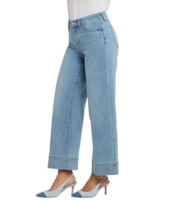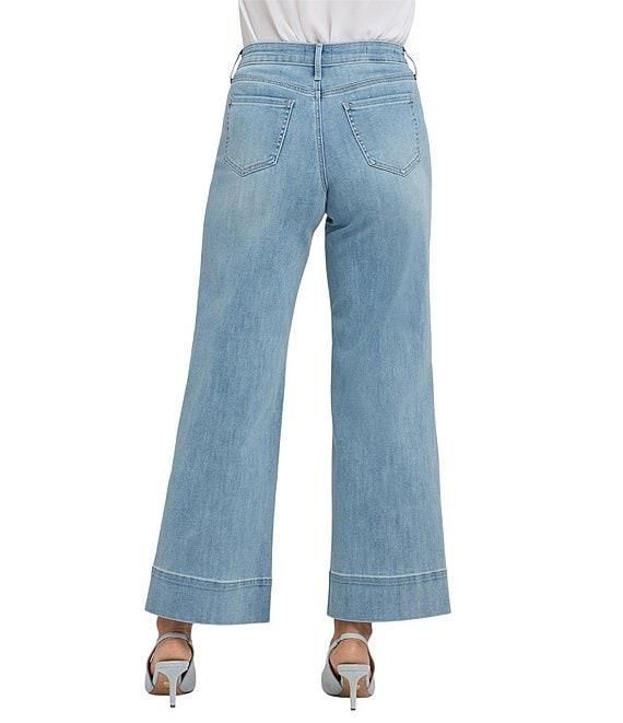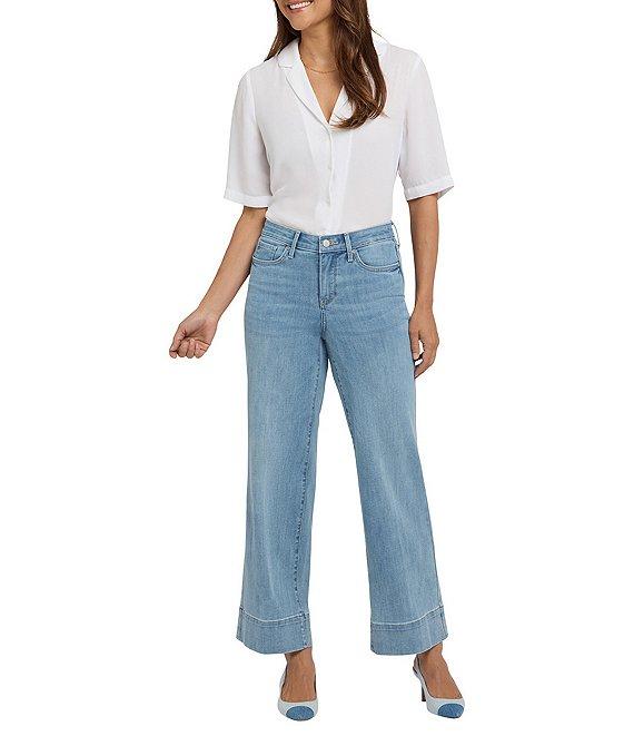 From NYDJ, this jean features: Denim fabrication Wide leg body Ankle length Deep hemline provides a polished look Lift Tuck® technology; proprietary slimming panel; patented crisscross design that smooths and sculpts Approx. 29" inseam; 22" leg opening; 9.75" front rise Zipper fly and button closure; center front Cotton/polyester/viscose/elastane Machine wash cold and line dry Imported.