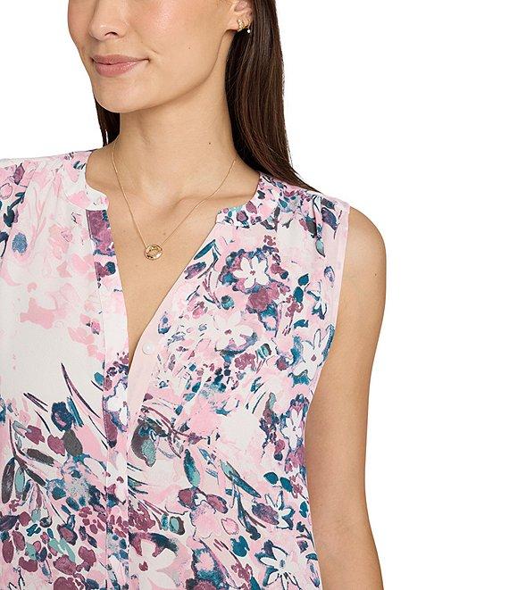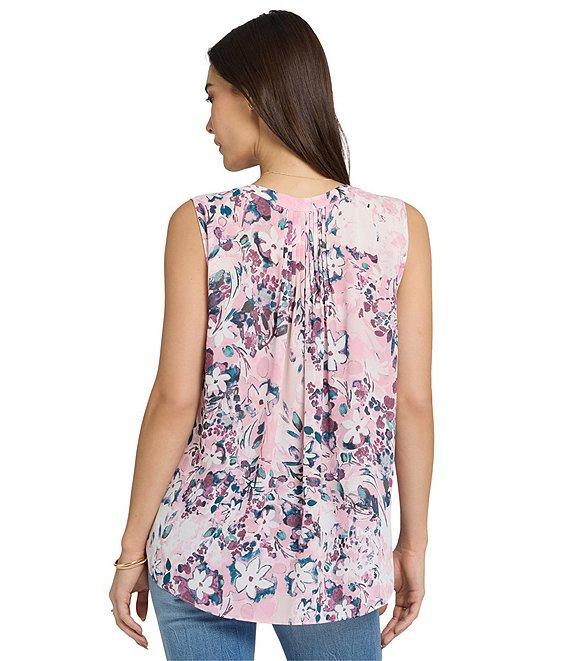 From NYDJ, this blouse features: Woven fabrication Blouse silhouette Split v-neckline Sleeveless, for a relaxed and refined look Mandarin collar Inverted pleat in the back to look polished Pullover construction Approx. 27" length, from top back to hem Recycled polyester Machine wash Imported.