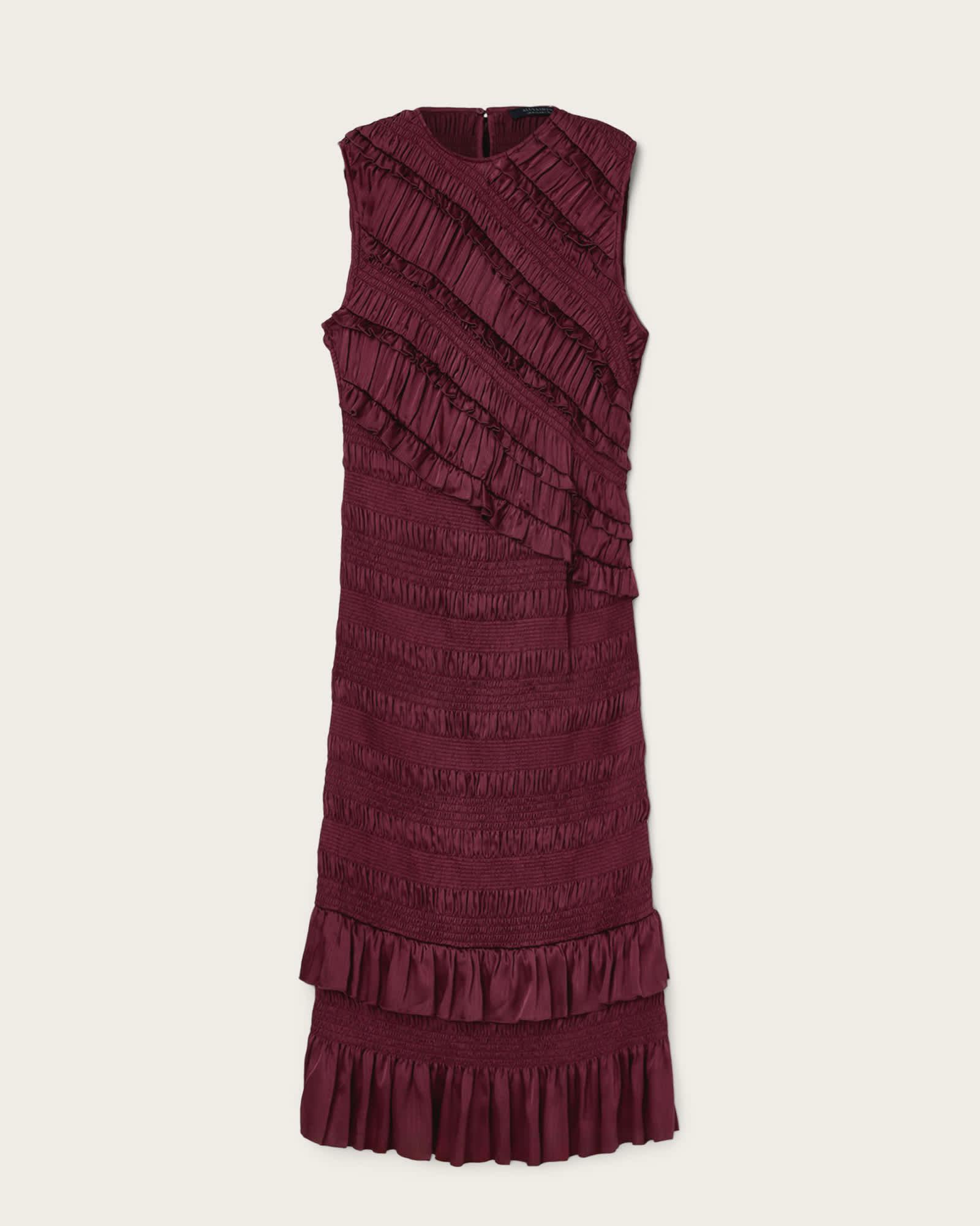 Nyla Ruffled Midi Dress TAWNY PORT RED | ALLSAINTS US