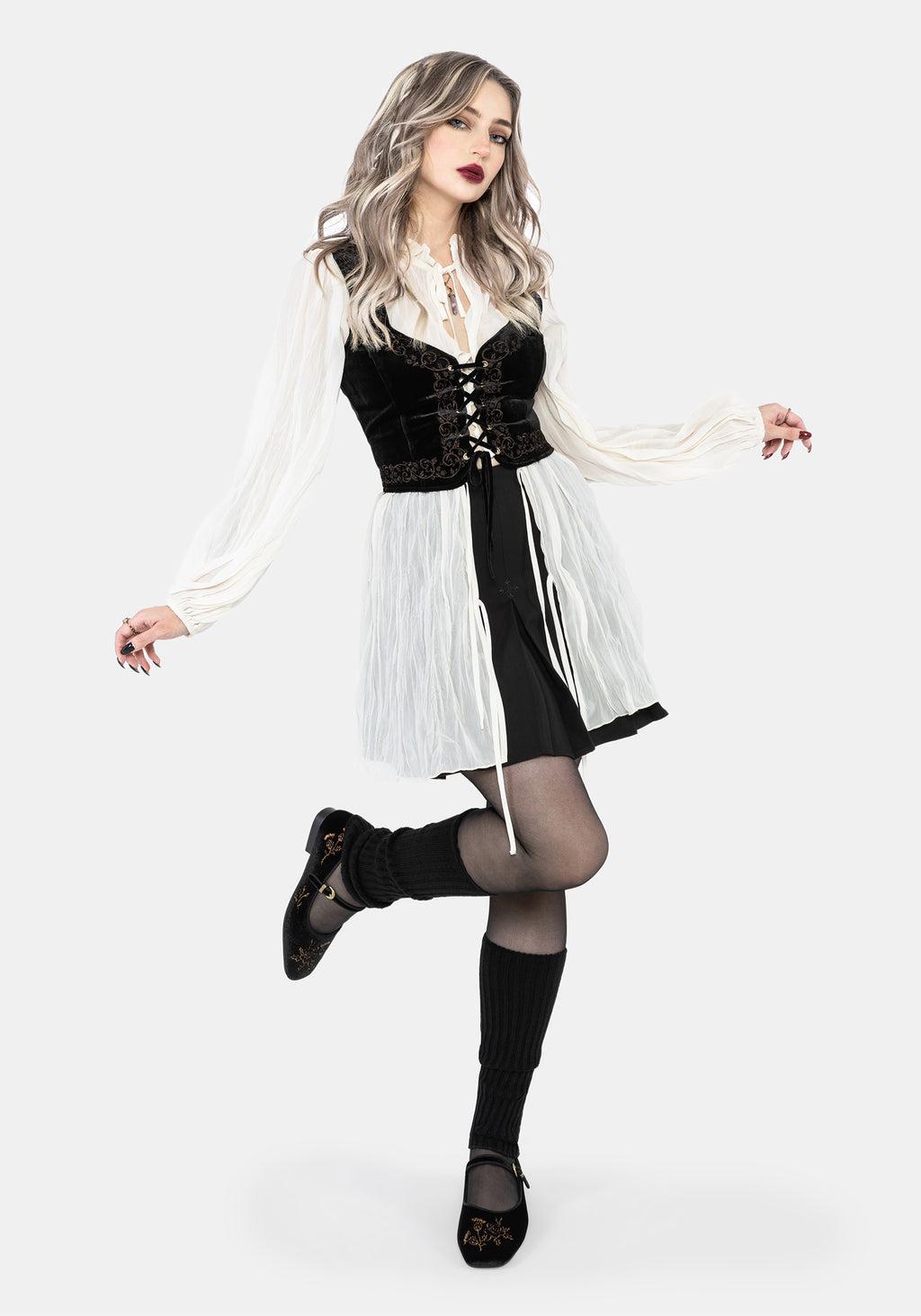 Nyla Velvet Embroidered Ballerina Pumps