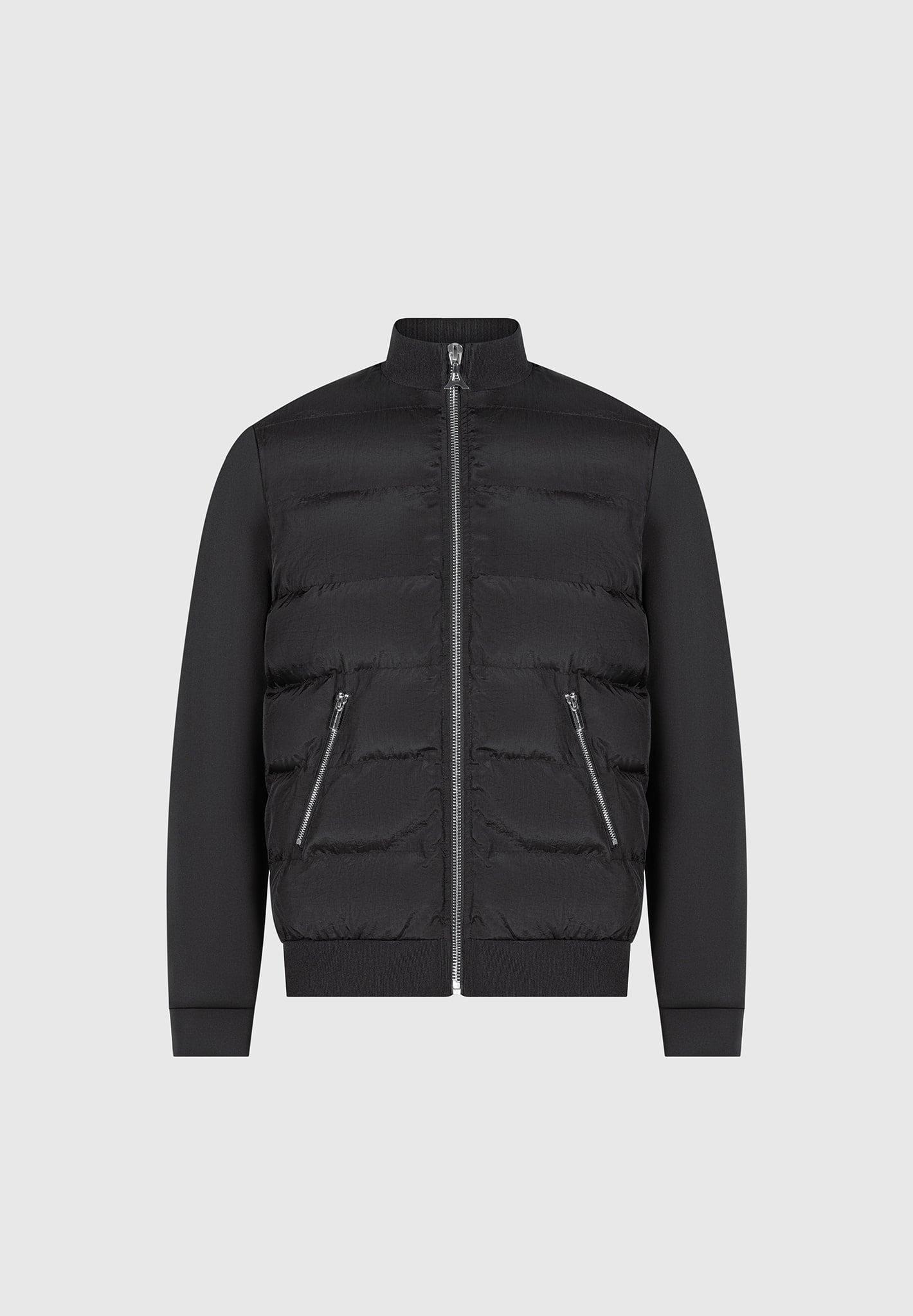 The Nylon and Neoprene Quilted Jacket in Black is a luxurious staple for any wardrobe. Featuring a horizontal padded body, this jacket provides warmth and a sophisticated silhouette. Regular Fit Neoprene Fabric Sleeves & Back Horizontal Padded Body Side Pockets with branded zips Silver 3D Manière De Voir Text Plaque Silver Manière De Voir Eiffel Zip Closure 90% Polyester 10% Elastane / 100% NylonAlways check the care label for wash instructions.