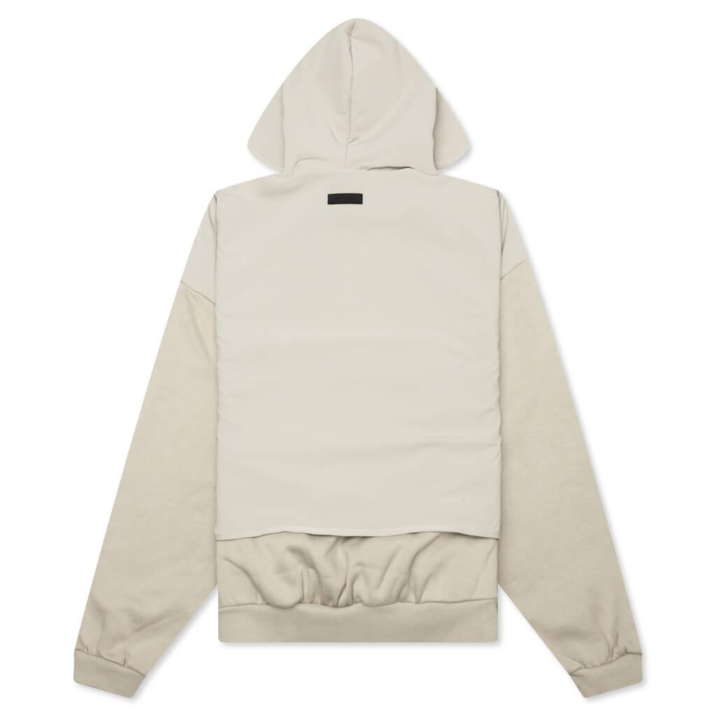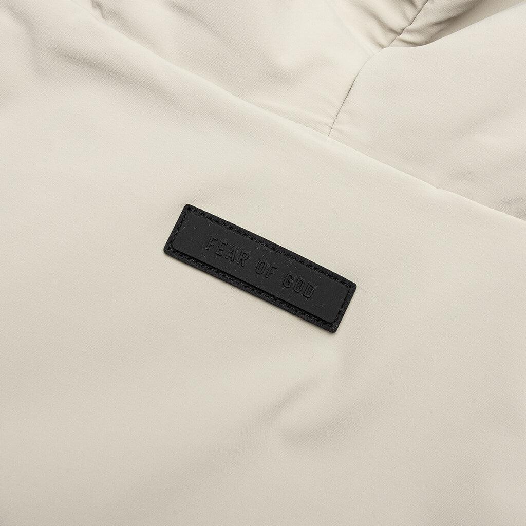 A new style inspired by the layered looks of the 90s, the Fear of God Essentials Nylon Fleece Hooded Sweater is made from core fleece and covered with a stretch nylon shell. The piece is designed with volume to create a round, cropped silhouette. Details include a mock neckline, side seam pockets, rib-knit cuffs, and waist hem. A collegiate-inspired Essentials Fear of God logo on the center front is made modern in a rubberized soft-touch texture. A Fear of God rubberized label is at the back collar to complete the design. ALL SALES ARE FINAL. THIS GARMENT HAS AN OVERSIZED FIT; IT IS RECOMMENDED TO SIZE DOWN FOR A TRUE-TO-SIZE FIT. 80% Cotton/20% Polyester Heavyweight fleece Spandex shell Relaxed fit Side seam pockets Mock neckline Ribbed cuffs Rubberized labels Style No: 202SP244325F