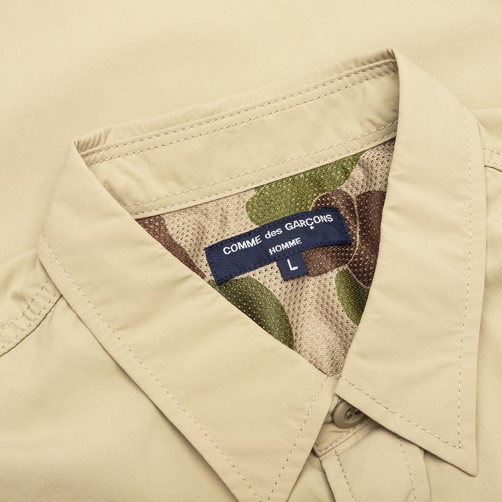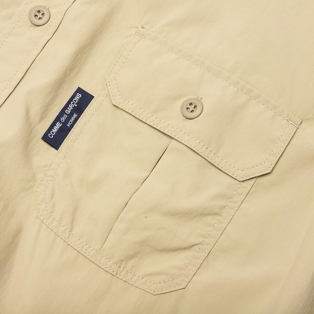 The Comme Des Garcons Homme Nylon Shirt is crafted from 100% nylon, incorporating Cordura technology for superior durability. This shirt, with its short sleeves, shirt collar, and frontal pockets, combines functionality with a regular fit and stylish design. 100% Nylon with Cordura technology Short sleeves Shirt collar Frontal pockets Regular fit Style No: HM-B021-051-3