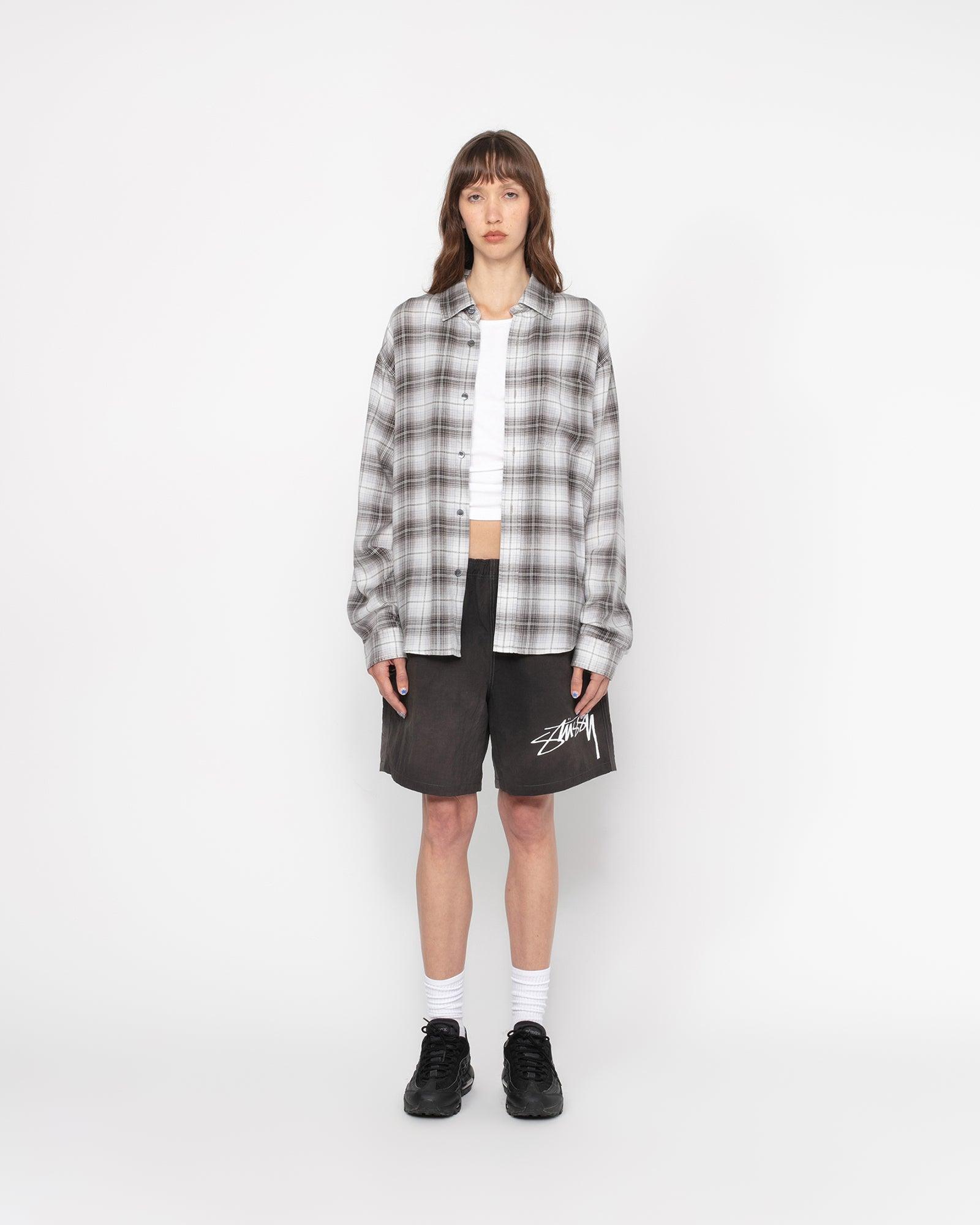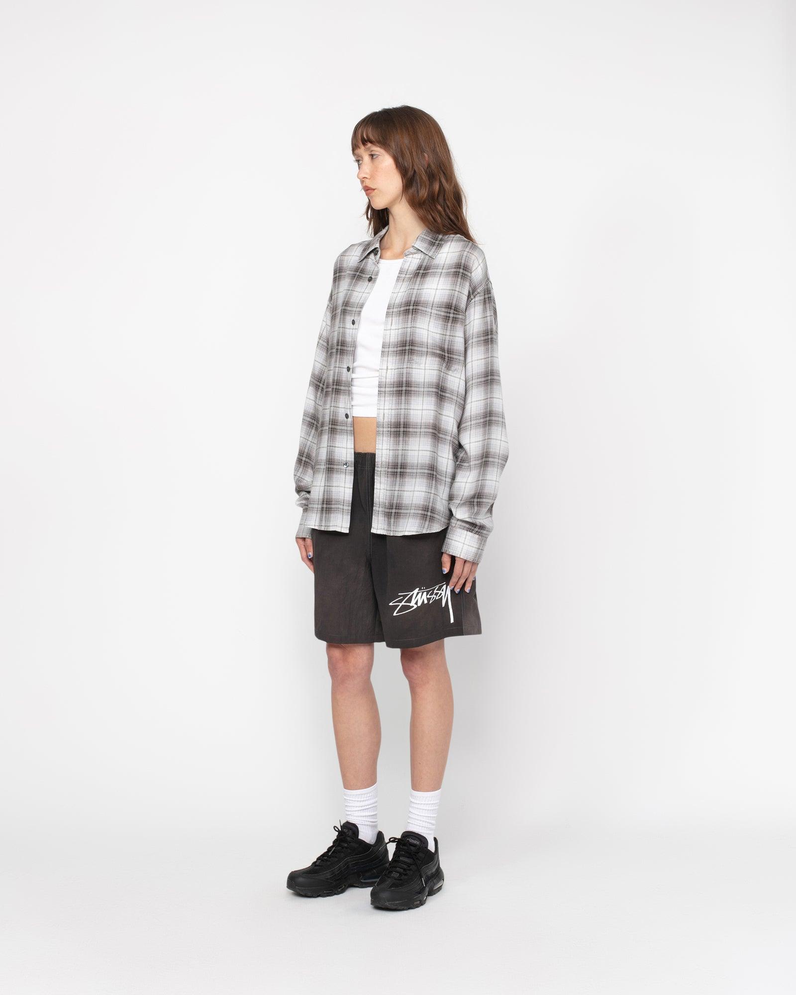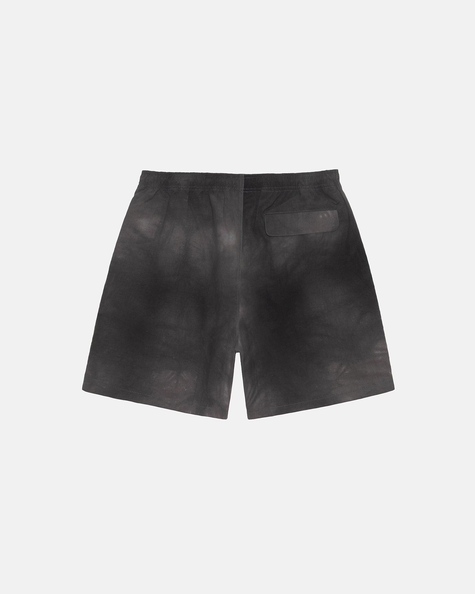 Relaxed short in textured wave dyed nylon. Featuring an internal drawcord and elastic waist. Stüssy smooth stock logo printed on the left leg. - Drawcord with plastic tips - Side seam pockets - Single rear welt pocket with snap closure - Eyelets at the bottom of internal pocket bags - Relaxed fit - Unisex - Size M inseam: 6 ¾" / 17cm - Size M leg opening: 27" / 68.6cm - Material: 100% nylon - Imported