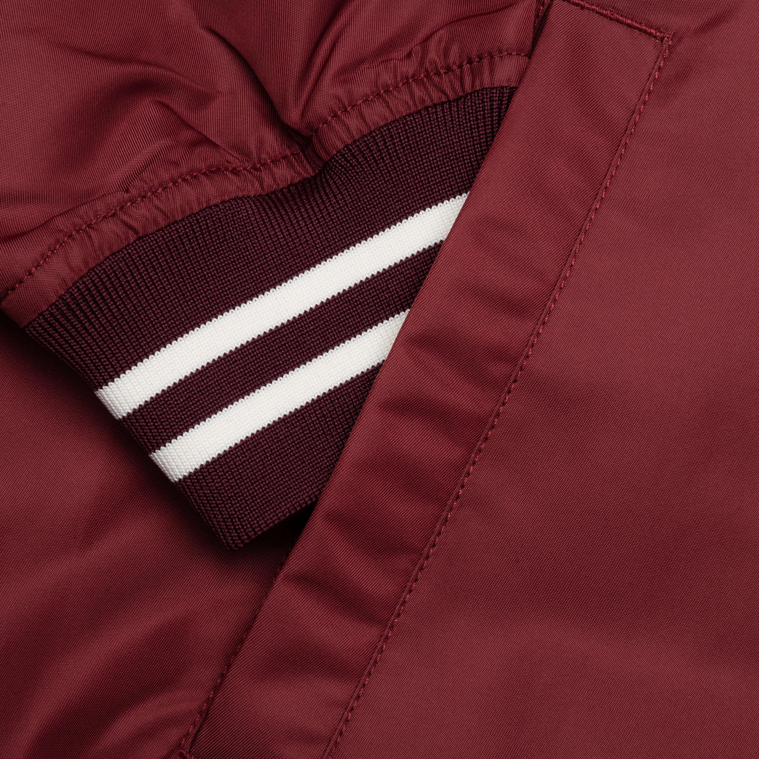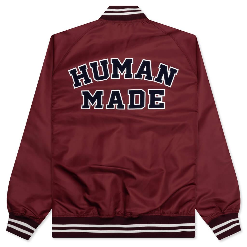 The Nylon Stadium Jacket in Burgundy is made from durable nylon and features a ribbed knit collar and cuffs for a comfortable fit. With a button closure, it showcases screen-printed branding on the front and puffed branding on the back, adding a stylish touch to your outerwear collection. 100% Nylon Ribbed knit collar Ribbed cuffs Button closure Screen printed branding on front Puffed branding on back Style No: HM28JK008-BUR
