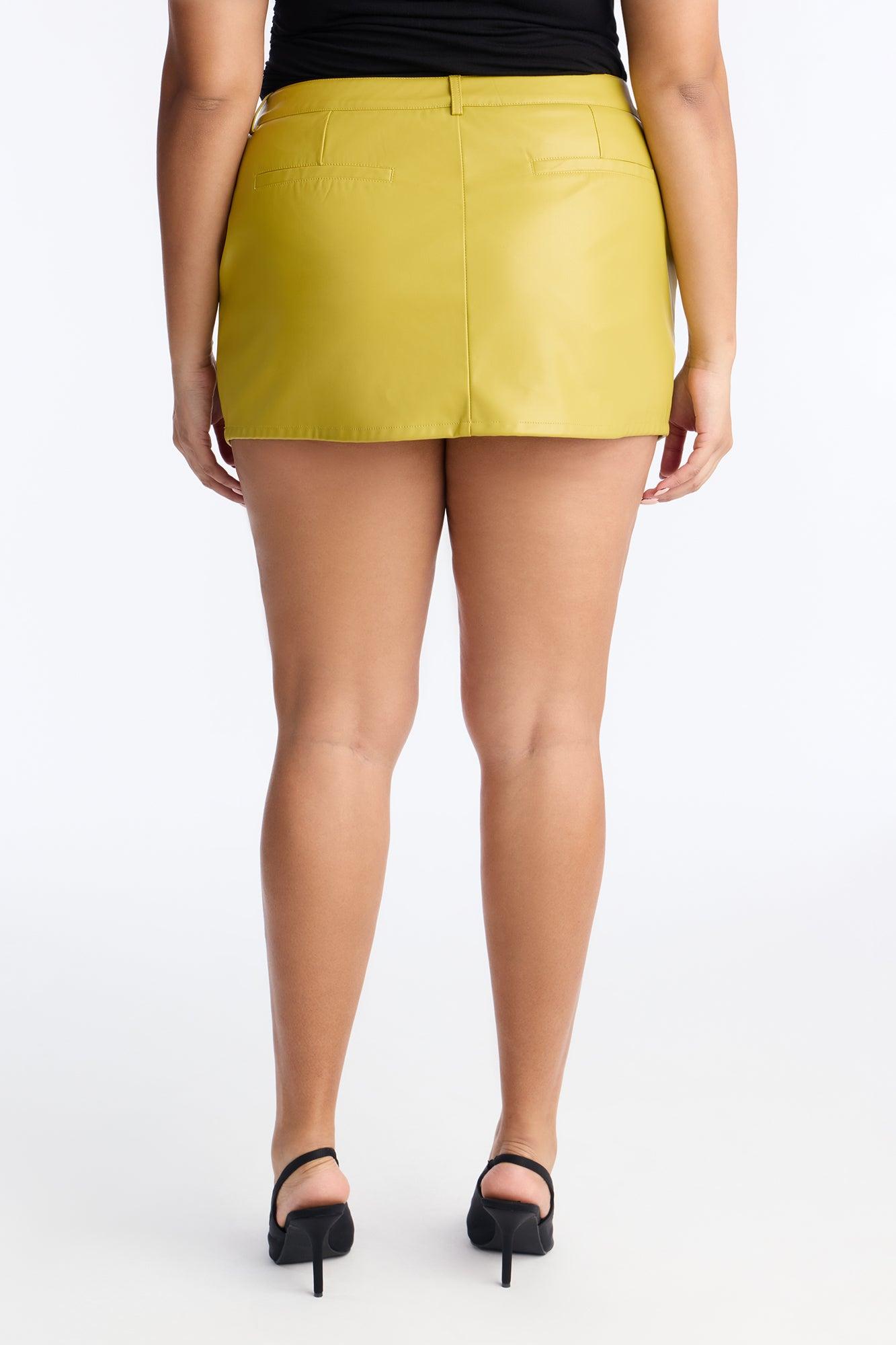 Available In Black, Camel, Chartreuse, Eggplant, Gunmetal/Pink, Red And Stone. Skort Hook And Eye Closure High Rise Hand Pockets Faux Leather Stretch 11.5" Length Final Sale Self: 55% Polyurethane 45% Polyester Lining1: 95% Polyester 5% Spandex Lining2: 90% Polyester 10% Cotton Imported California Proposition 65WARNING: Cancer and Reproductive Harm - www.P65Warnings.ca.gov.