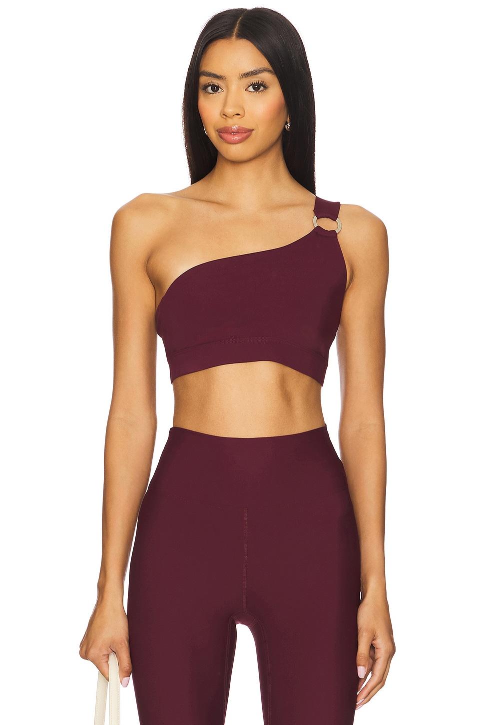 79% polyester, 21% spandex. Hand wash. Unpadded cups. Soft wide underband. One shoulder styling with metal accent at strap. Midweight jersey activewear fabricItem not sold as a set. Made in US. Revolve Style No. HORR-WI4. Manufacturer Style No. HS-1108.