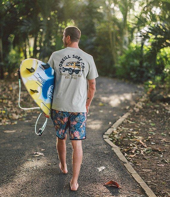 From O'Neill, this t-shirt features: Crew neckline Short sleeves “O’Neill” logo, and small graphic printed on left side of chest “O’Neill Surf Co” logo, a utility vehicle, and other verbiage printed on the back Pullover construction Standard fit that's relaxed through the body and sleeves High-quality, soft cotton Machine wash/tumble dry Imported.