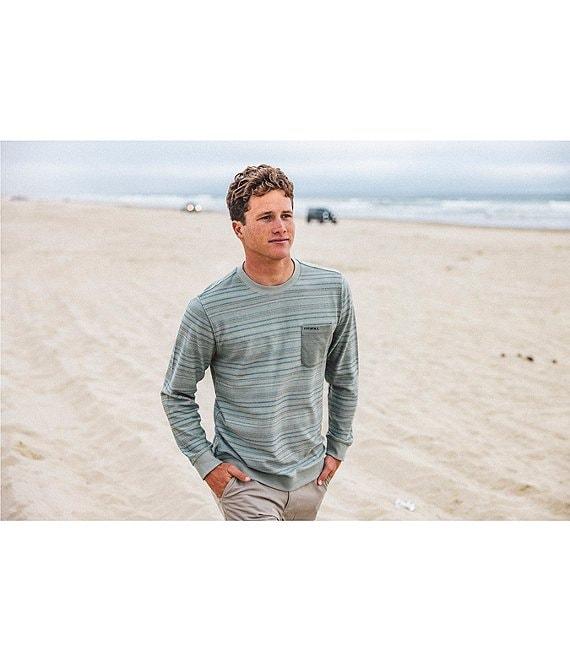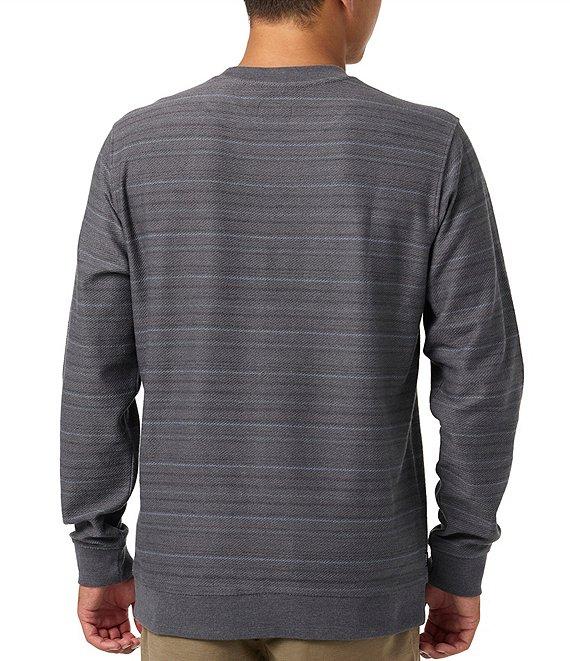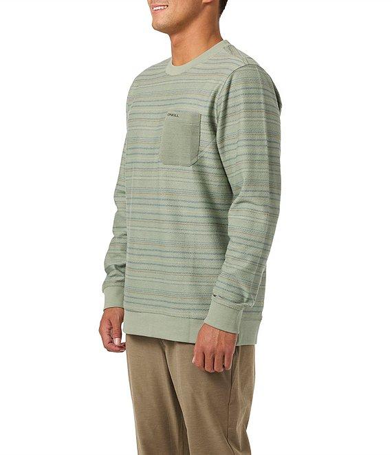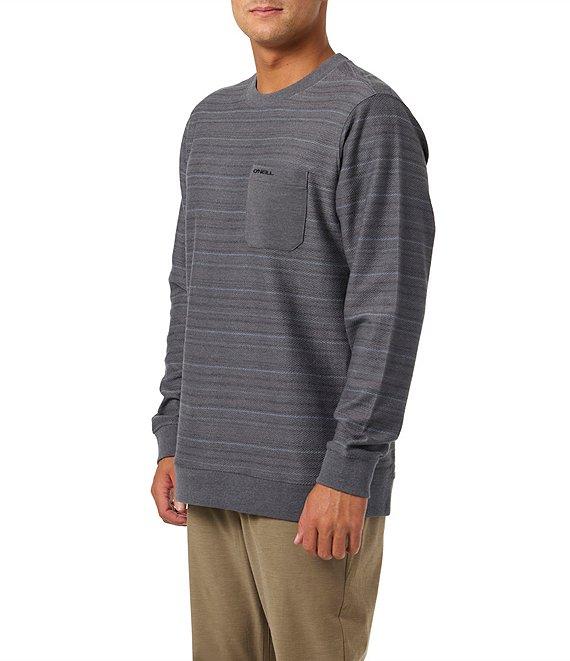 From O'Neill, this sweatshirt features: Horizontal stripe print Solid ribbed collar, cuffs, and hem Long sleeves Solid contrasting patch pocket with "O'Neill" embroidered logo Side seam label Pullover construction Standard fit Comfortable cotton French terry Machine wash/tumble dry Imported.