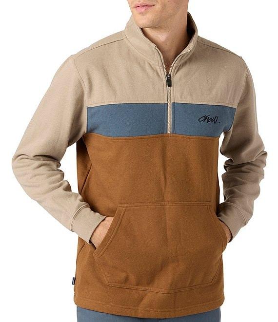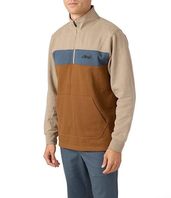 From O'Neill, this pullover features: Color block design Long sleeves with ribbed cuffs Quarter zip front "O'Neill" logo embroidery on the chest Front kangaroo pocket Pullover construction Standard fit Cotton/polyester butter fleece Machine wash/tumble dry Imported.