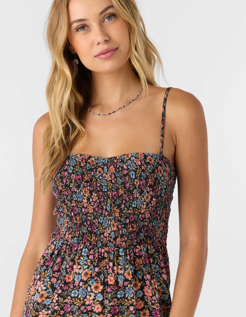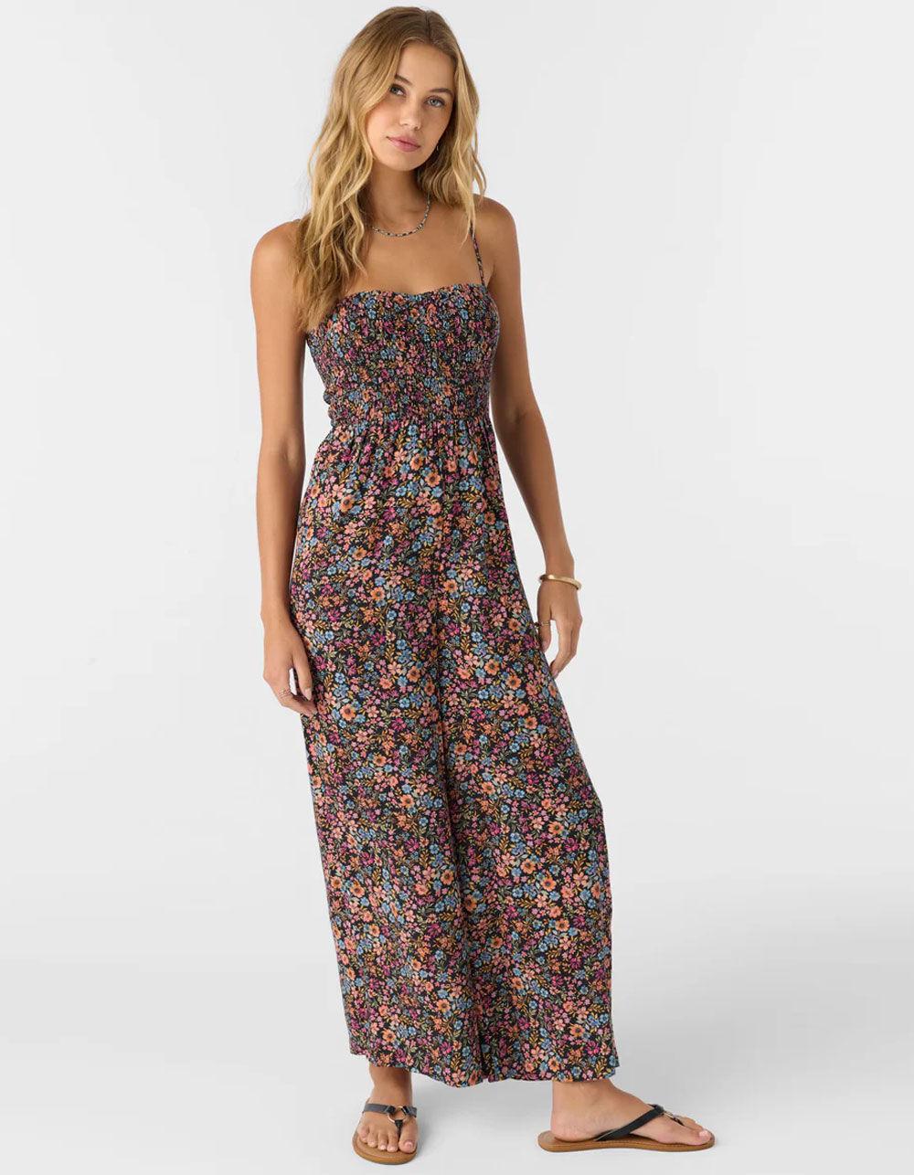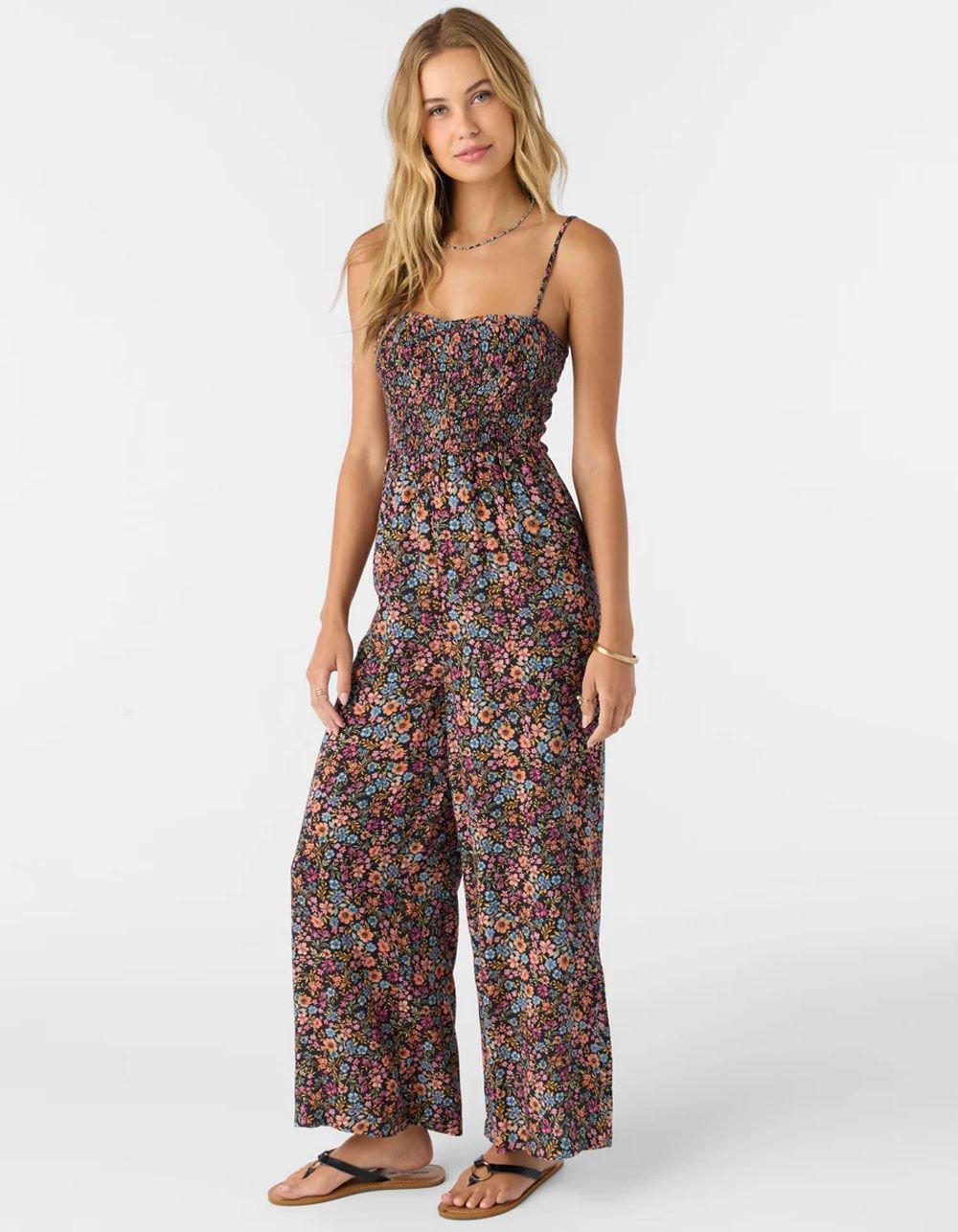 O'Neill Kaylane Jumper. Effortlessly chic, this printed jumper combines comfort and style with its smocked bodice and adjustable straps. The ankle-length silhouette, side pockets and fixed cinch front create a flattering look that's perfect for any occasion. Smocked bodice. Fixed cinch front. Adjustable straps. Allover print. 24" inseam. 100% Viscose. Imported.