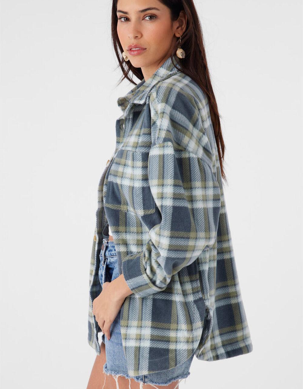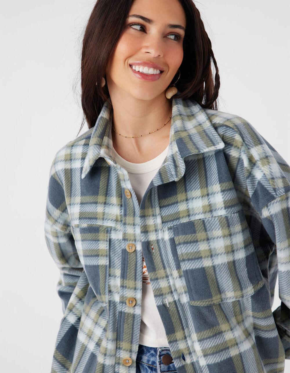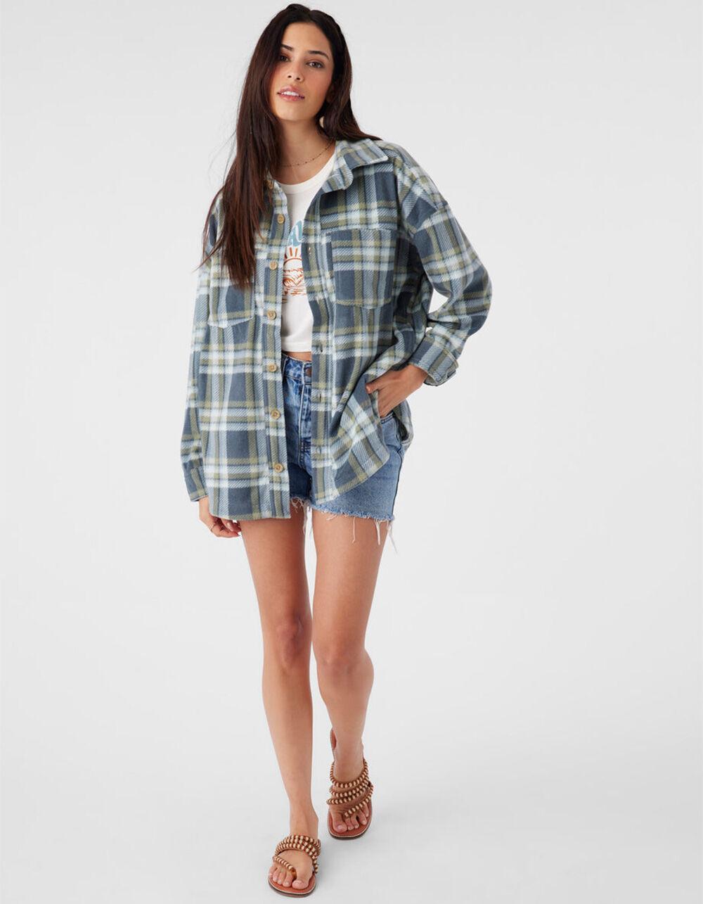 O'Neill Rune Superfleece Oversized Flannel. Allover plaid pattern. Button-up closure. Front chest pockets. Side pockets. Oversized fit. 29" in length. Long sleeves with button cuffs. Metal badge branding. 100% Polyester superfleece. Machine wash. Imported.