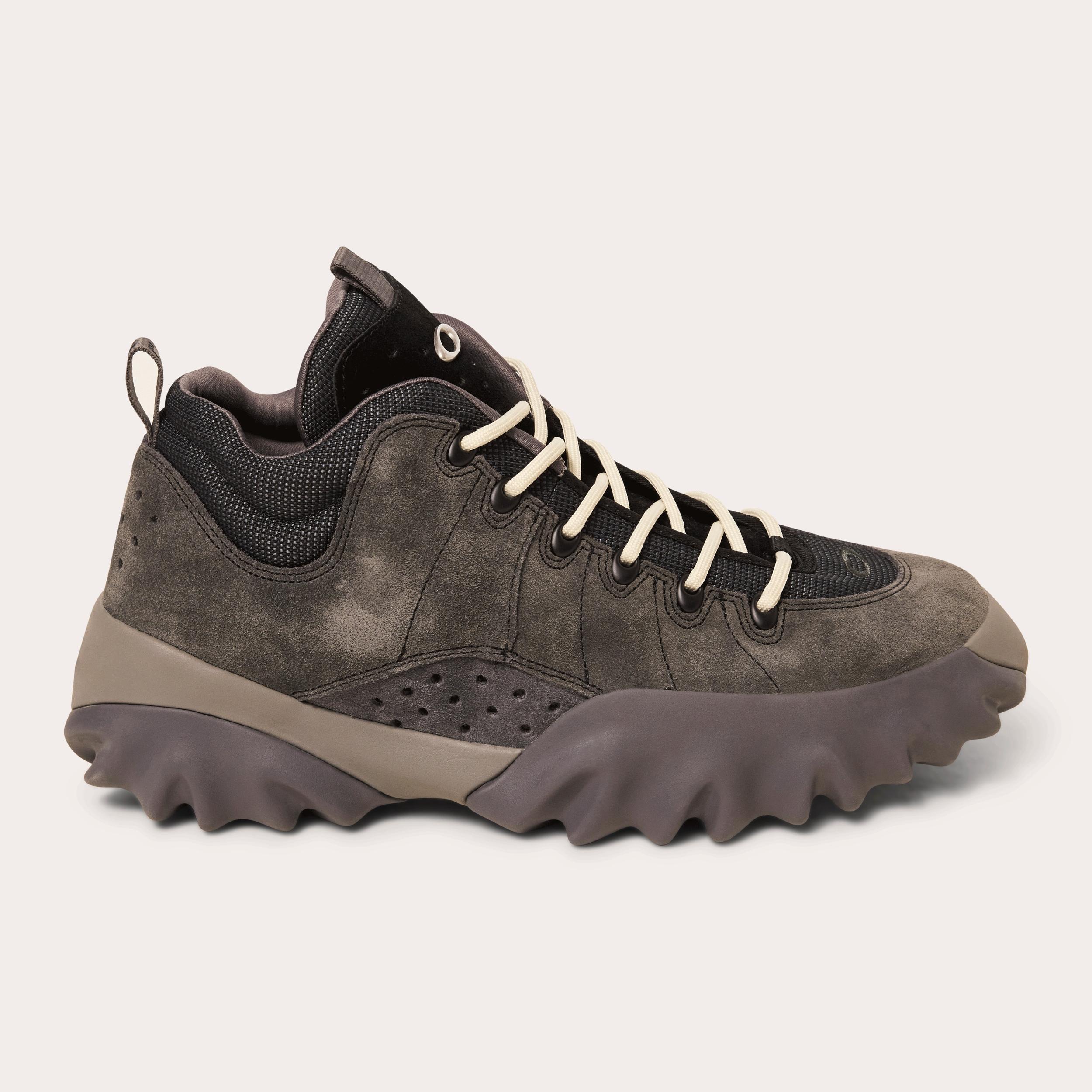 A force to reckon with, the Oakley Factory Team Edge boot pulls from the past and delivers to the present in new and unconventional ways . Borrowing its footing from Chop Saw, this mid-height boot lays foundation over an Ethylene Vinyl Acetate (EVA) mid-sole that provides structure and comfort while sitting on top of the coveted rubber serrated outsole that ferociously grips the ground. Featuring premium materials , precise stitching details and a perforated suede tongue applique adorned with a metal Ellipse logo, the boots offer support, liberty of movement and unparallel style . Delivered in gargoyle-inspired colorway, this Oakley Factory Team Edge Boot comes with black ink nubuck, granite grey inner panel and lining, tonal stitching and ivory laces that bring attention to the refined detailing on top of your feet .