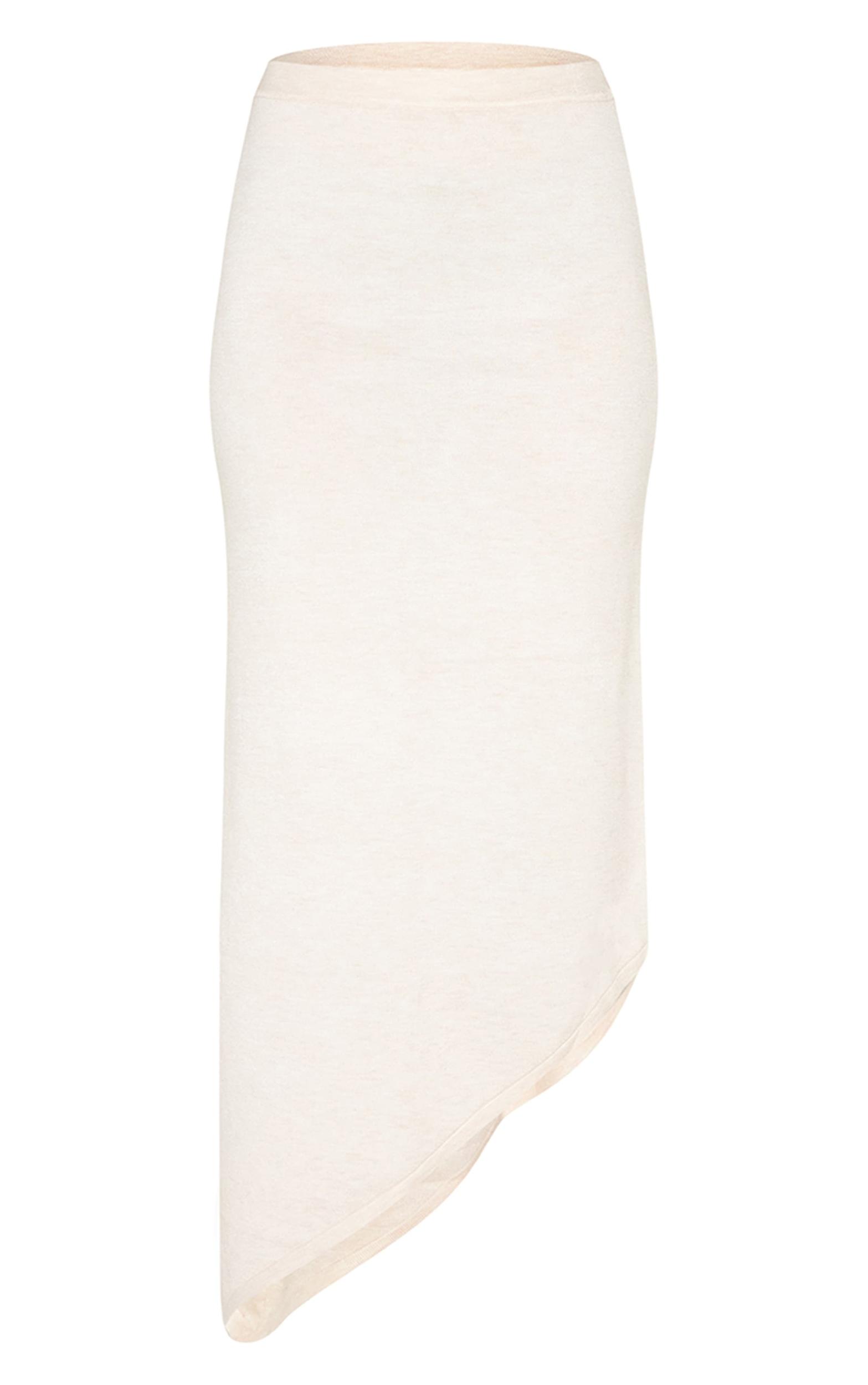 Feel confident in neutral tones in this oatmeal fine knit asymmetric hem maxi skirt. Tailored from neutral toned material, this skirt has a fashion-forward asymmetrical hemline and a maxi length fit. For a coordinated look, pair this piece with the matching top, heeled sandals and your favorite shoulder bag.Length approx 114.5cm/45inch (Based on sample size S)Model wears size SModel Height - 5ft 7inchp]:!mb-4inch>Brand: PrettyLittleThingCategory: KnitwearProduct type: SkirtColor: Oatmeal Occasion: Day
