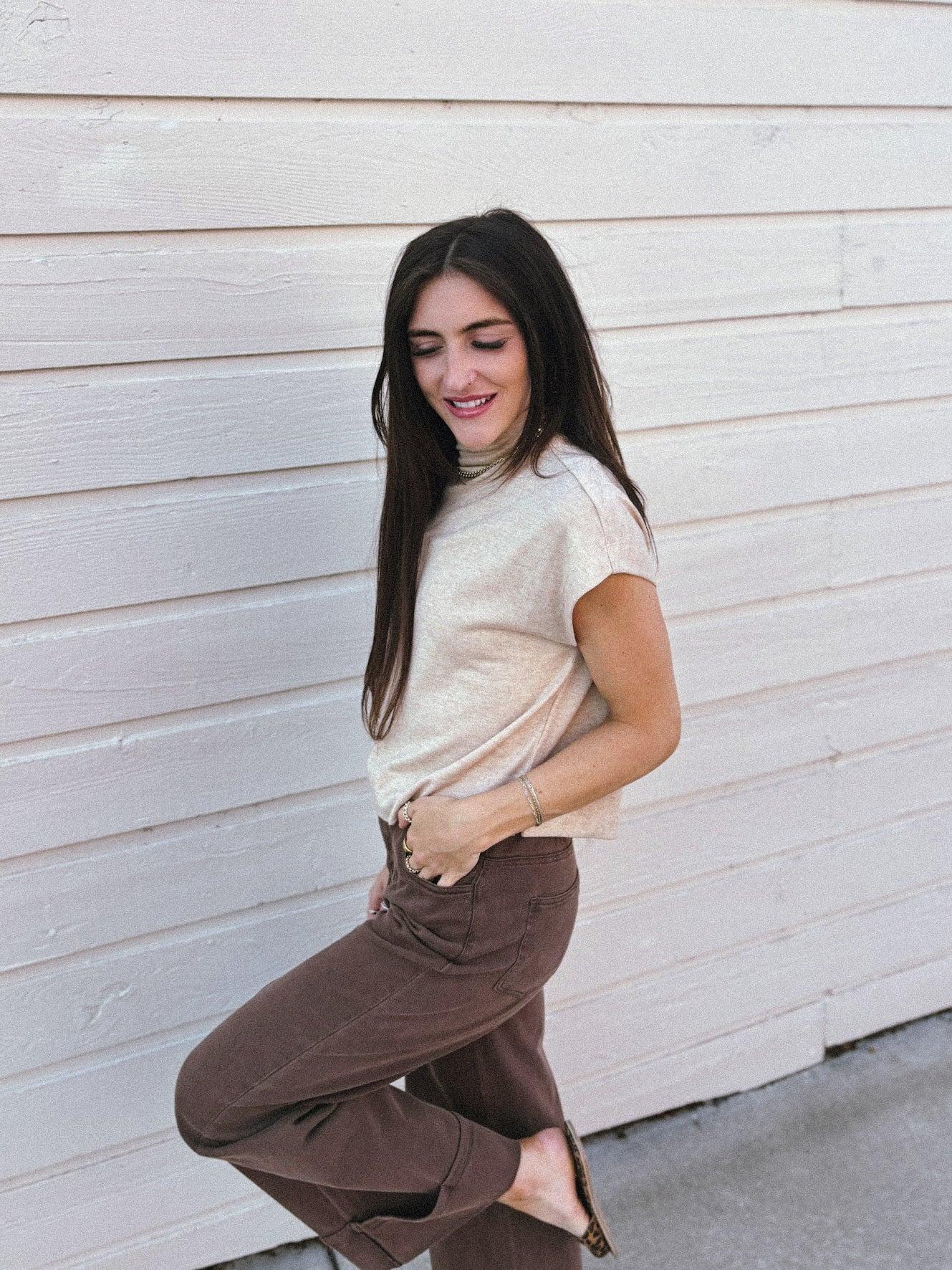 Wrap yourself in cozy charm with the Oatmeal Mock Neck pullover. This solid knit top features a snug and comfortable mock neck that adds a touch of playful sophistication to your look. Perfect for layering or wearing solo, it’s your go-to for effortless style and comfort all day long.
