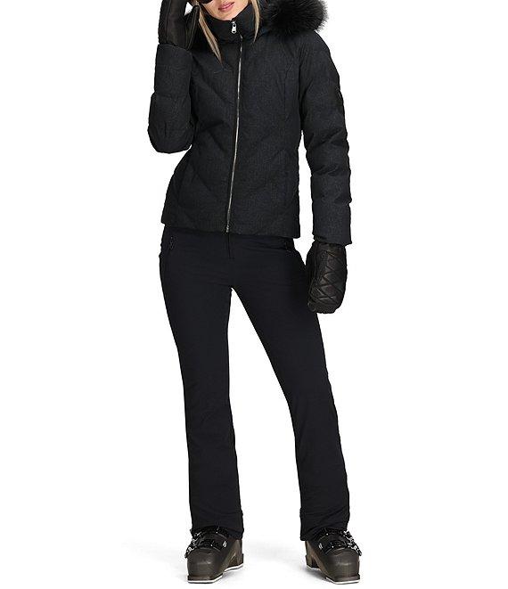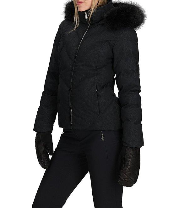 From Obermeyer, this jacket features: Waterproof plain weave fabrication Stand fleece lined collar neckline Attached 2-way adjustable hood Long sleeves with elastic cuffs Zip handwarmer pockets Zip inner chest pocket Fleece chin warmer Removable faux fur trim Interior windgurad Adjustable water resistant powder skirt Fully lined Straight hemline Zip front closure Polyester Machine wash Imported.