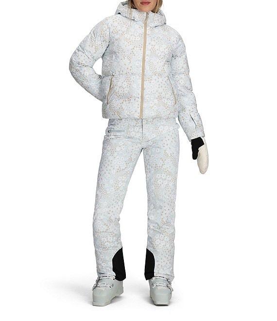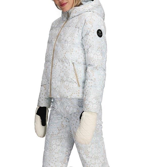 From Obermeyer, this jacket features: Puffer silhouette Stand collar neckline Attached adjustable hooded Long sleeves with thumbholes inner cuffs Pass pocket interior Handwarmer pockets Snap-away powder skirt Synthetic down 600 fill power equivalent Water resistant Fully lines Straight hemline Zip front closure Approx. 22.75" length Nylon Machine wash Imported.