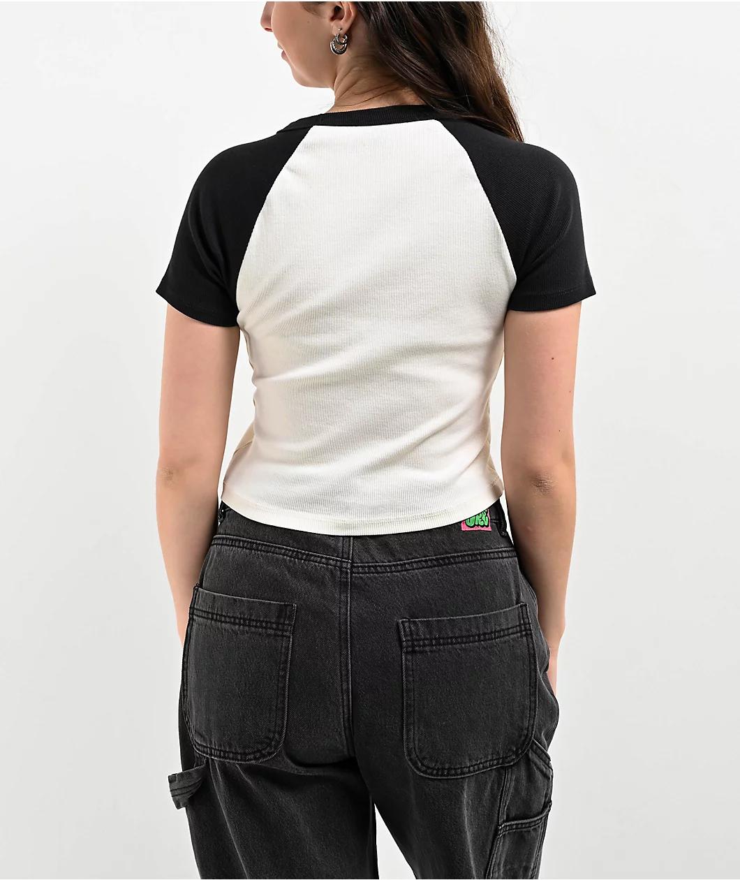 Featured in a natural cotton and black color scheme, Sheperd Fairey's brand Obey delivers the Bolt t-shirt in a raglan, cropped silhouette and a ribbed construction throughout -highlighting the wearer's figure. The short sleeve two tone tee is finish