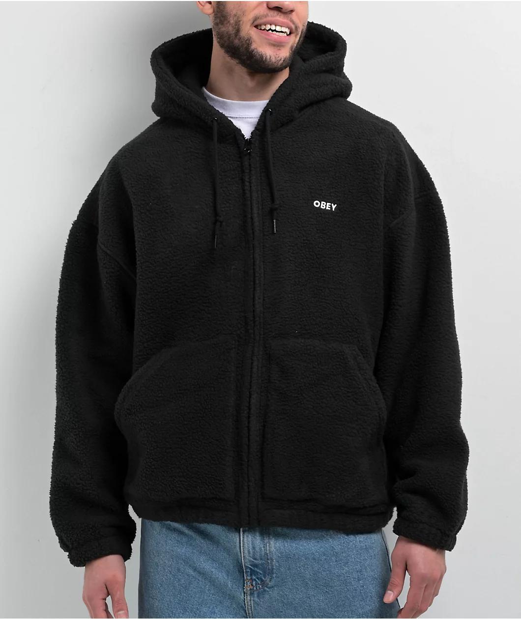 The minds at Obey welcome the Gaze II zip hoodie, arriving in a sleek black colorway featuring a sherpa-style exterior. This sweatshirt has a cozy fleece lining equipped to handle cold conditions. Showcasing embroidered branding on the left side of t