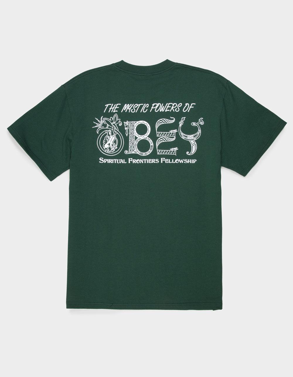 Obey Mystic Powers Tee. Large graphics on front and back. Crew neck. Short sleeve. 100% Cotton. Machine wash. Imported.