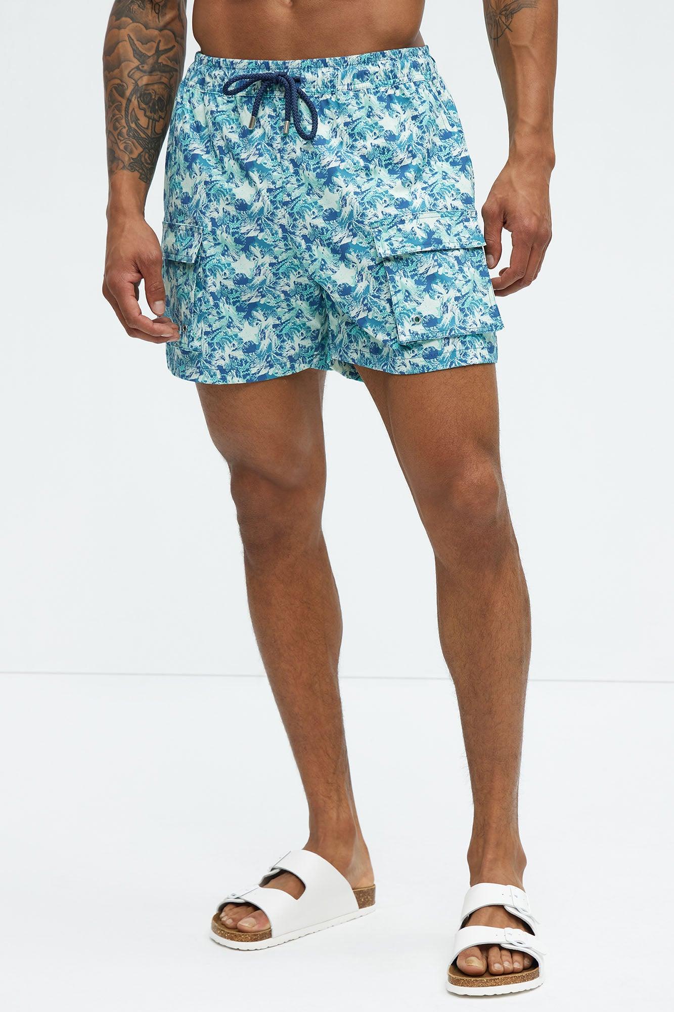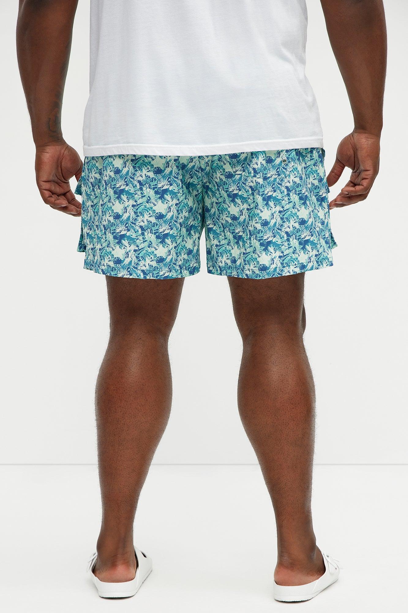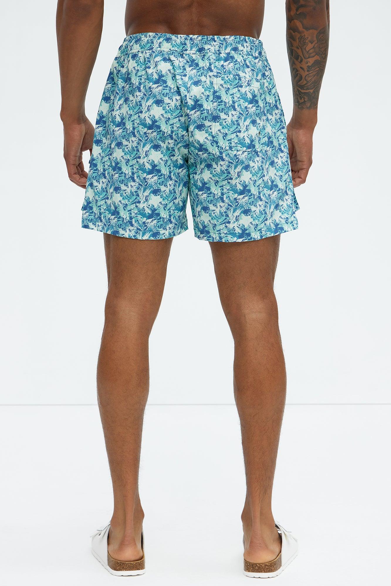 Available In Blue/combo. 6" Inseam Elastic Waist Drawstring Mesh Lined Side Hand Pockets Tropical Oceanic Print Back Pocket With Velcro Closure Shell: 92% Nylon, 8% Spandex Lining: 100% Nylon Final Sale Disclaimer: Pattern Placement May Vary. Imported California Proposition 65 WARNING: Cancer and Reproductive Harm - www.P65Warnings.ca.gov.