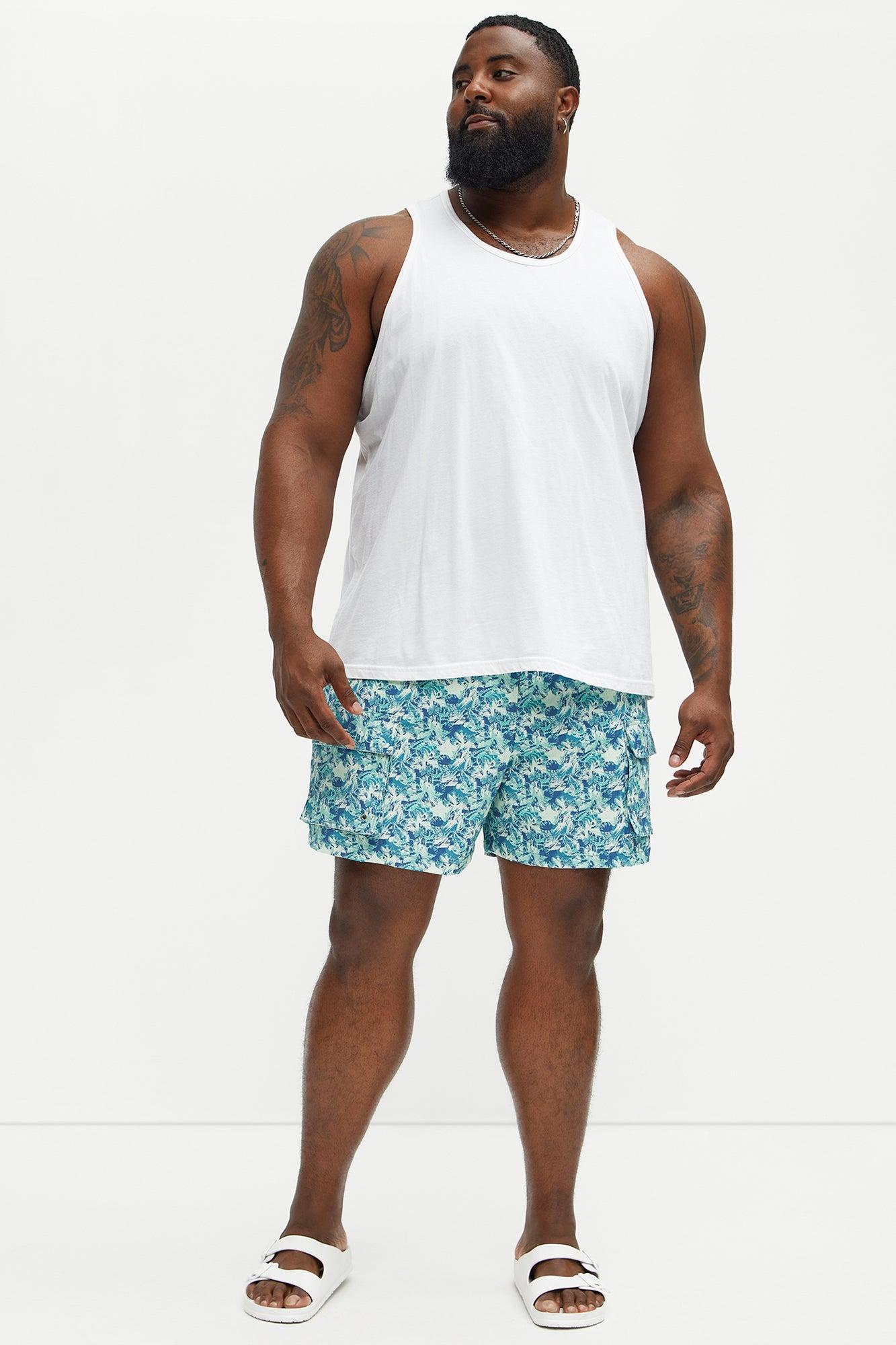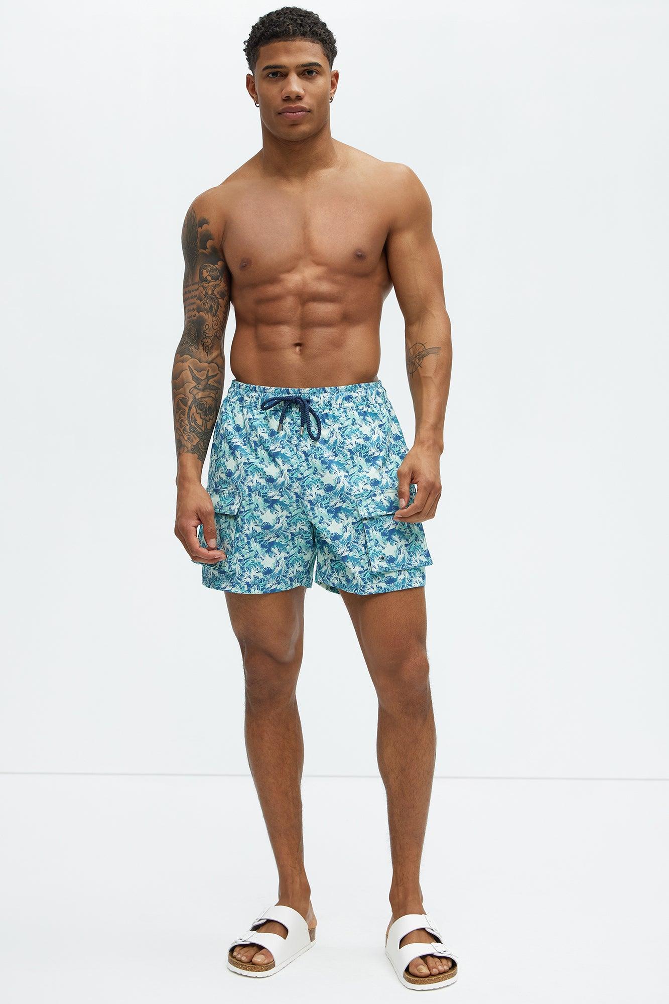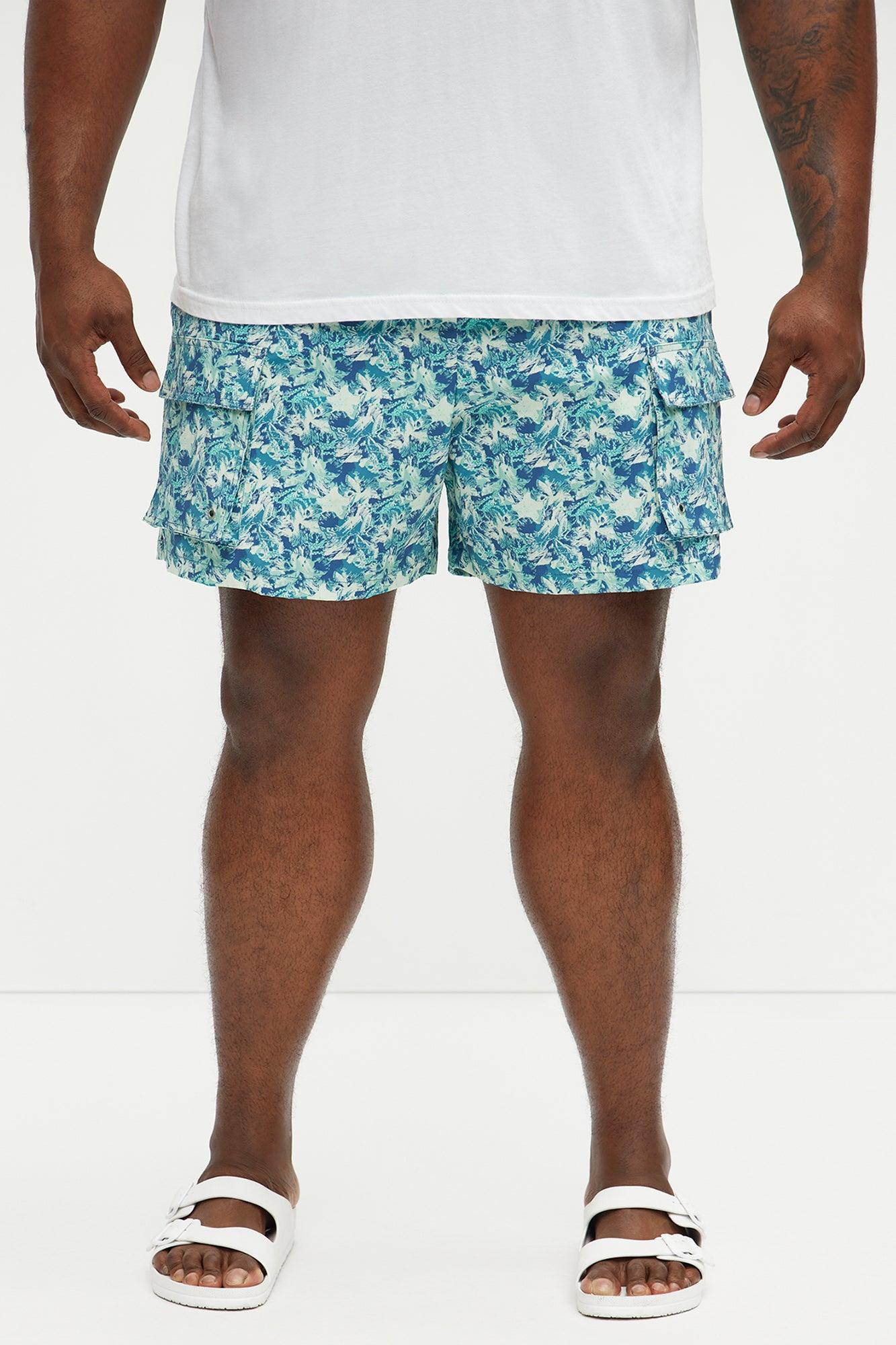 Available In Blue/combo. 6" Inseam Elastic Waist Drawstring Mesh Lined Side Hand Pockets Tropical Oceanic Print Back Pocket With Velcro Closure Shell: 92% Nylon, 8% Spandex Lining: 100% Nylon Final Sale Disclaimer: Pattern Placement May Vary. Imported California Proposition 65 WARNING: Cancer and Reproductive Harm - www.P65Warnings.ca.gov.