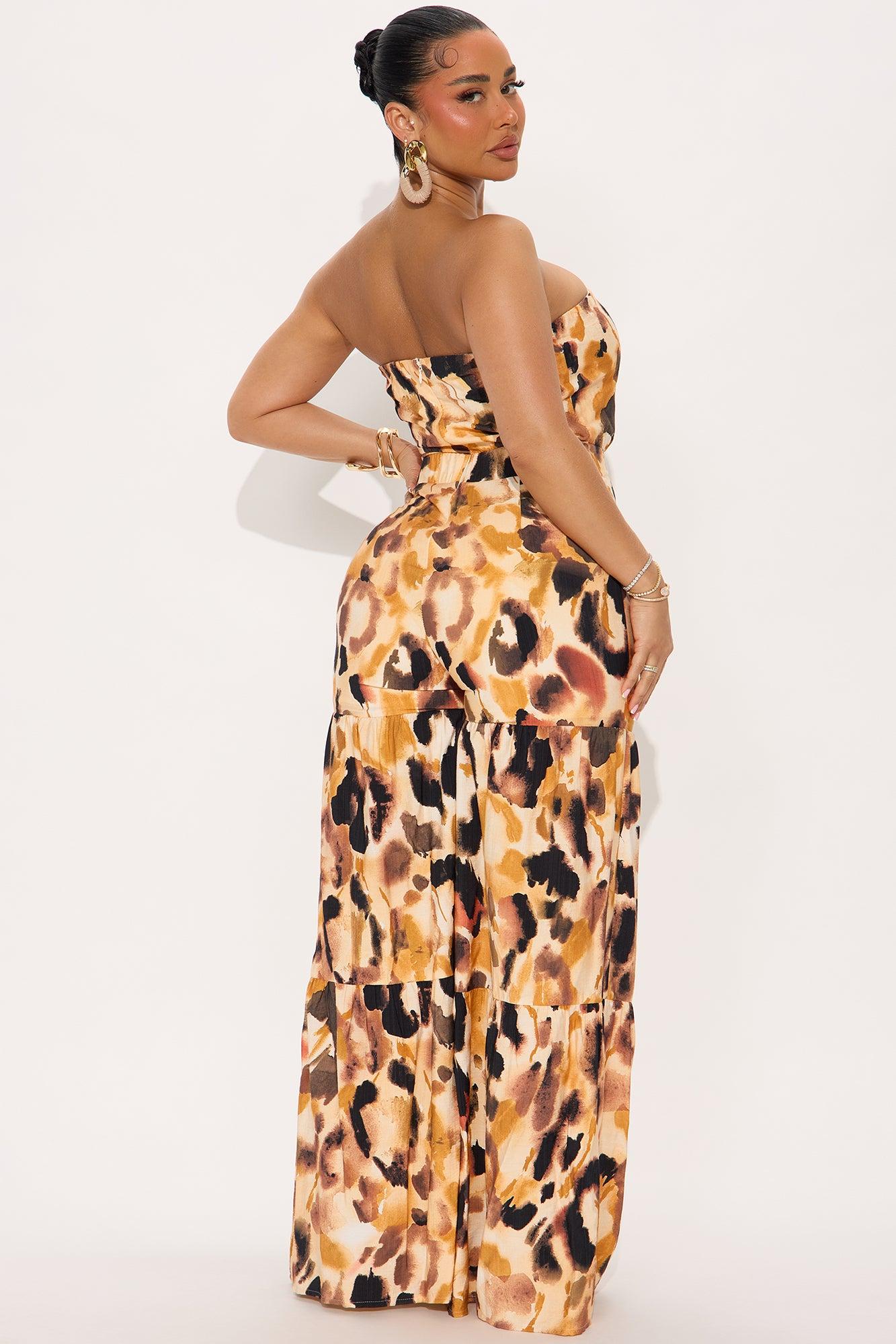 Available In Leopard. Jumpsuit Wide Leg Inseam = 33" Non Stretch Disclaimer: Print Placement May Vary Self: 89% Nylon 11% Viscose Lining: 100% Rayon Imported California Proposition 65WARNING: Cancer and Reproductive Harm - www.P65Warnings.ca.gov.