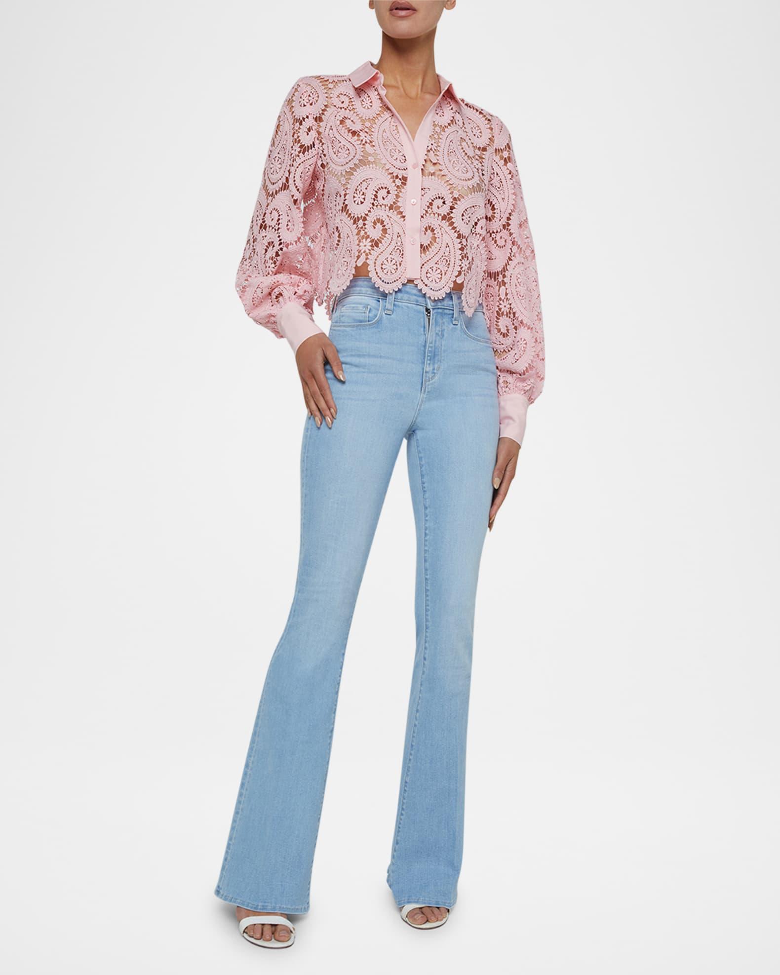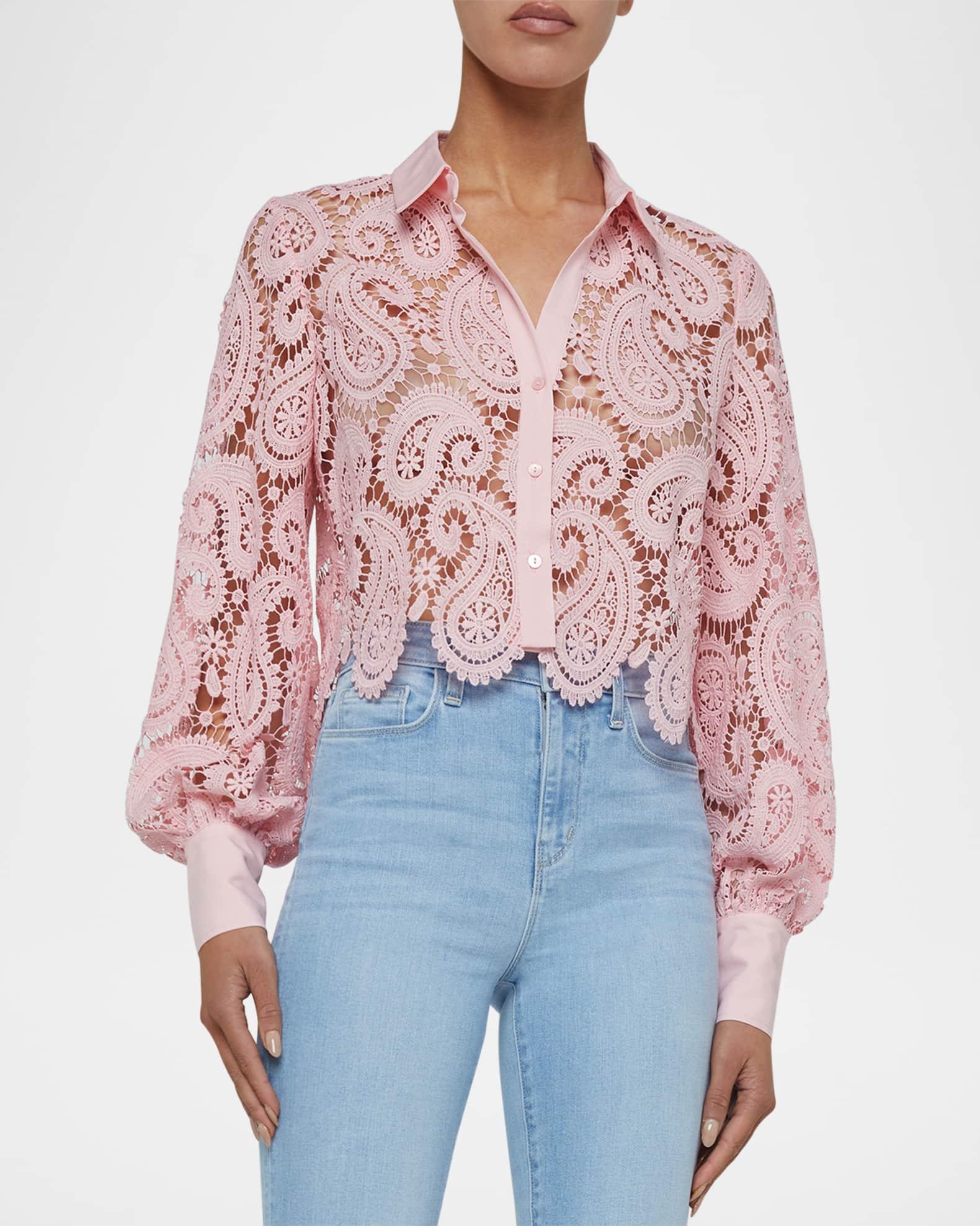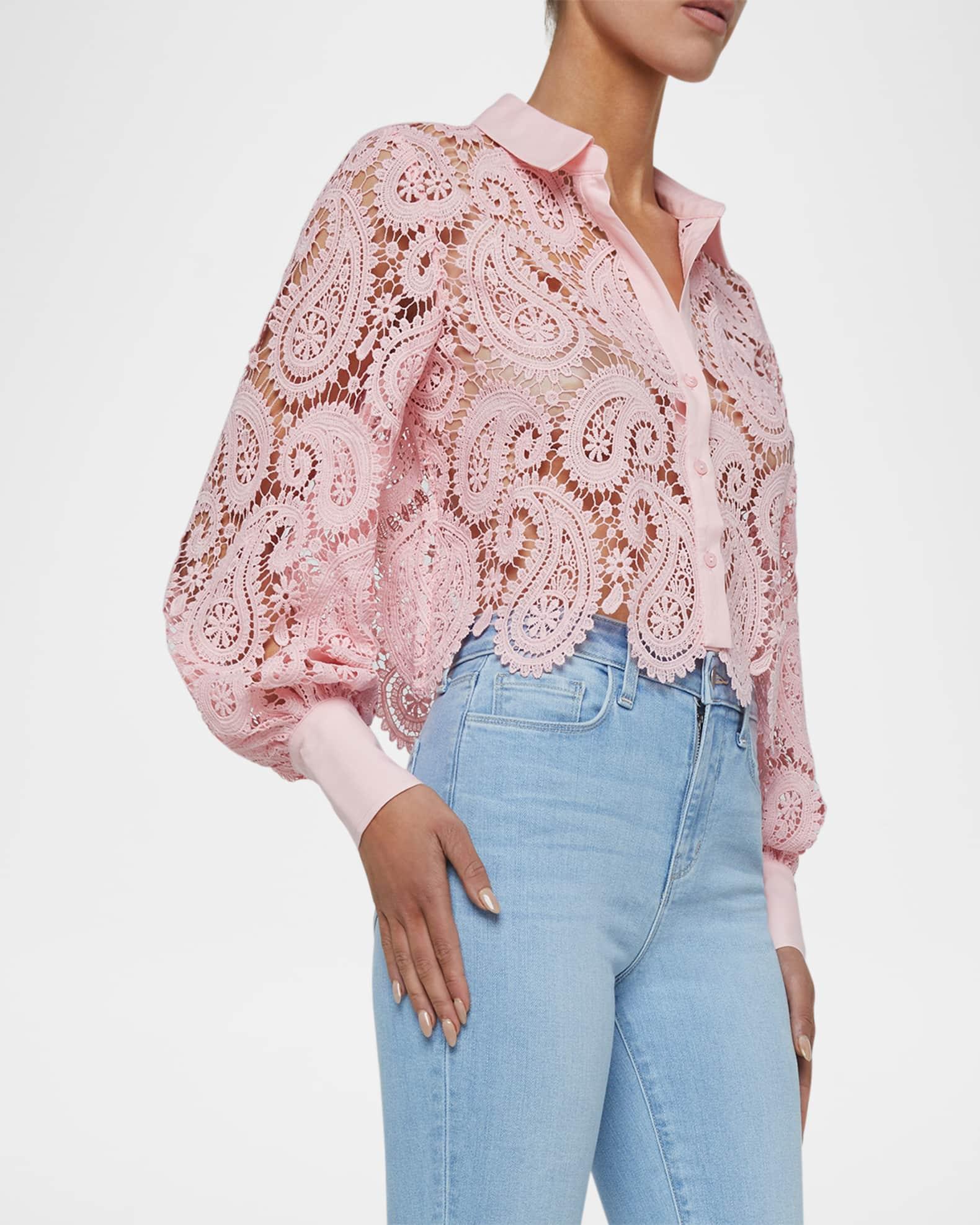 Odelia Paisley Lace Cropped Button-Front Blouse