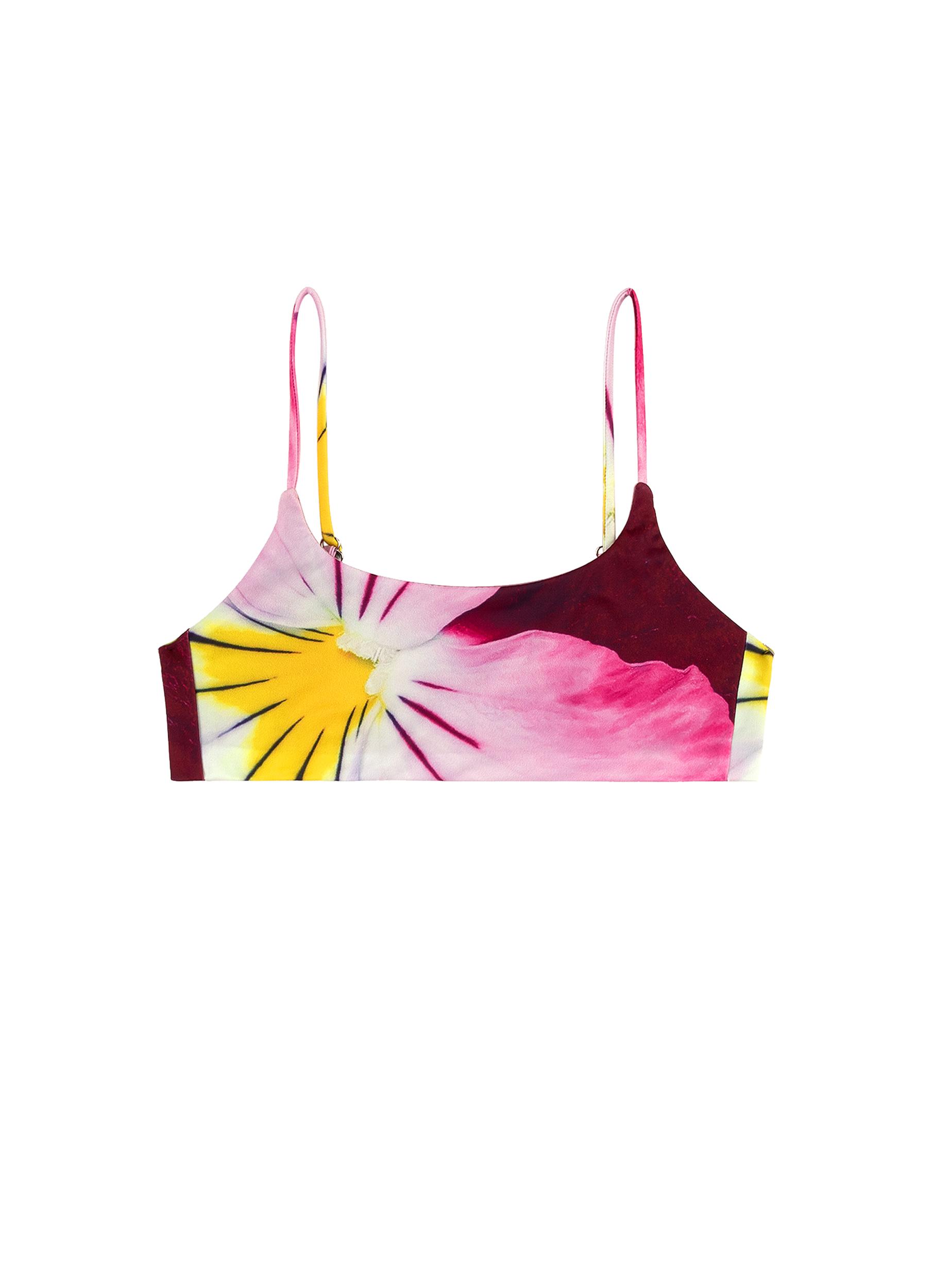 A modern shape with a bold, painterly twist. The Odessa Top features a clean-lined scoop silhouette and adjustable spaghetti straps, printed with a blown-up pansy floral that feels both soft and striking. Made from smooth stretch swim fabric and fully lined for support and comfort, it’s a go-to for days in the sun or dips in cool water.Pair it with the matching Odessa Bottom in Pansy to complete the set. Each swimwear piece is made to order with care and intention. Because of this, please allow up to 4 weeks for your order to ship.
