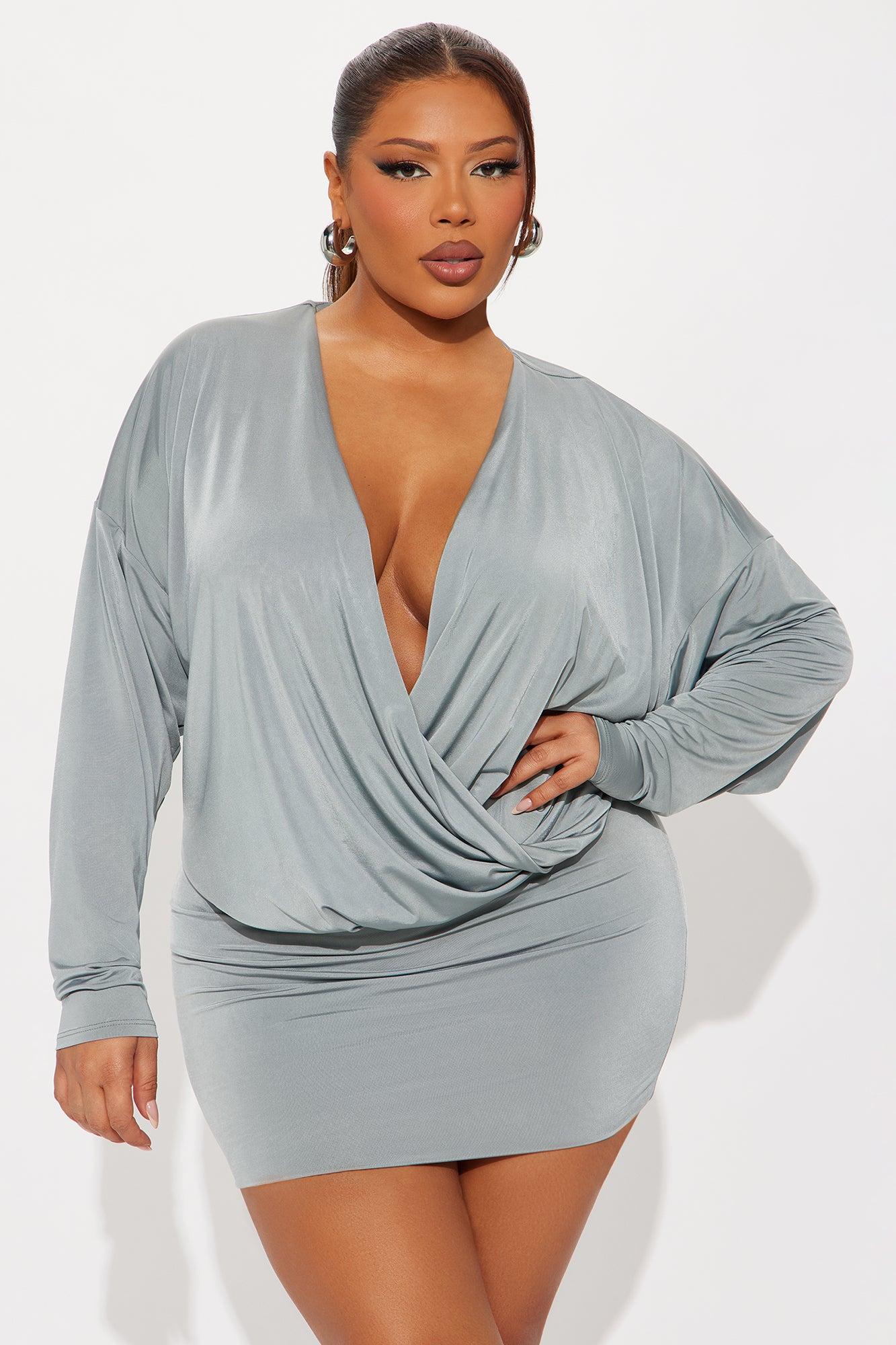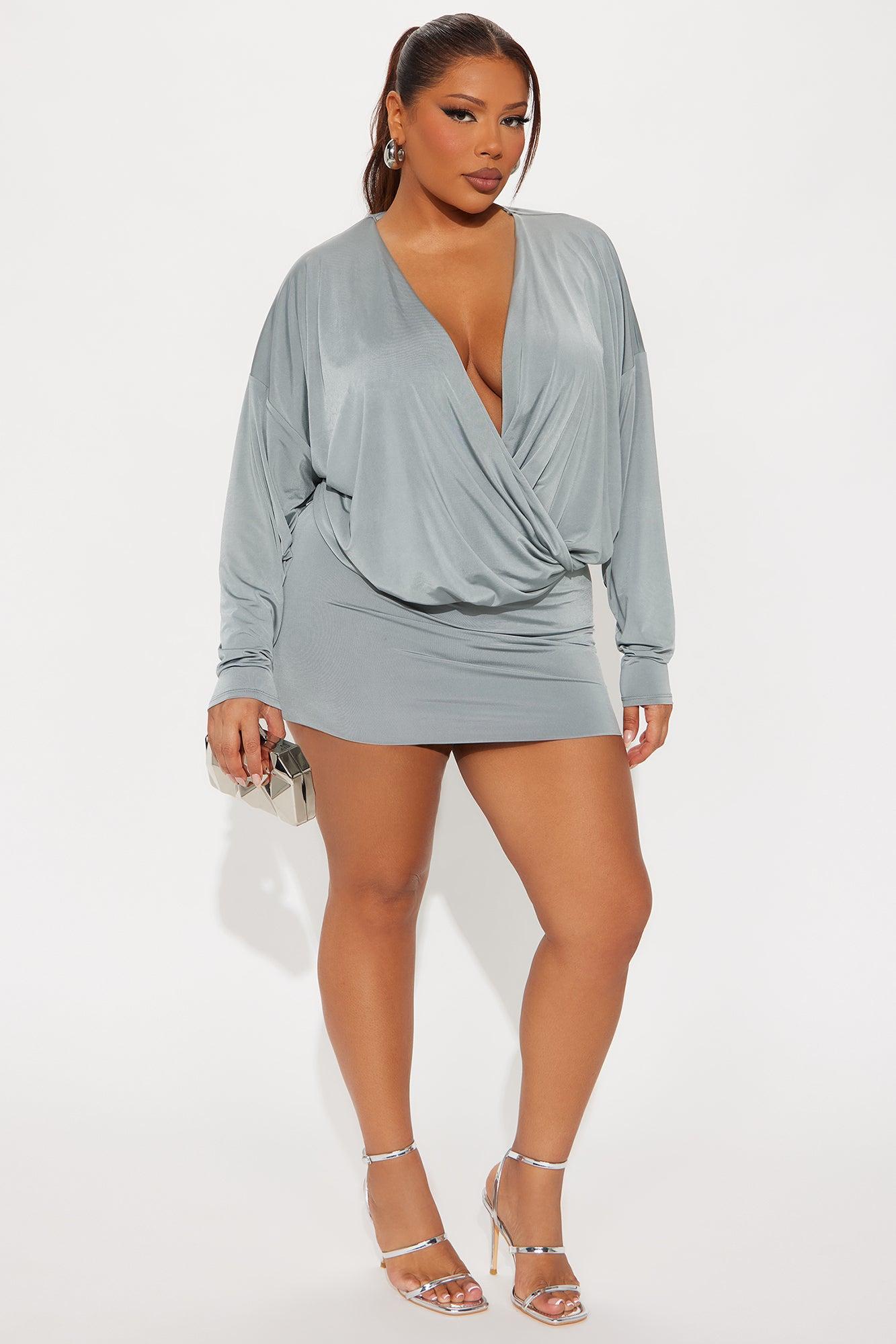 Odette Long Sleeve Mini Dress - Slate Grey Female