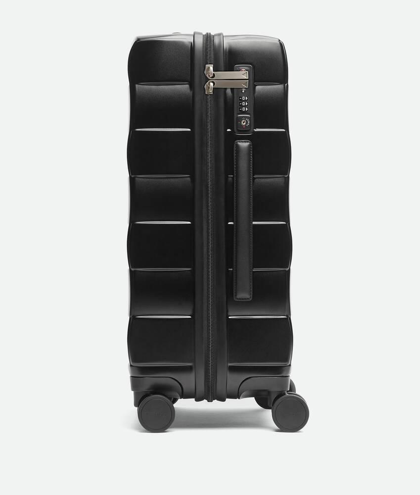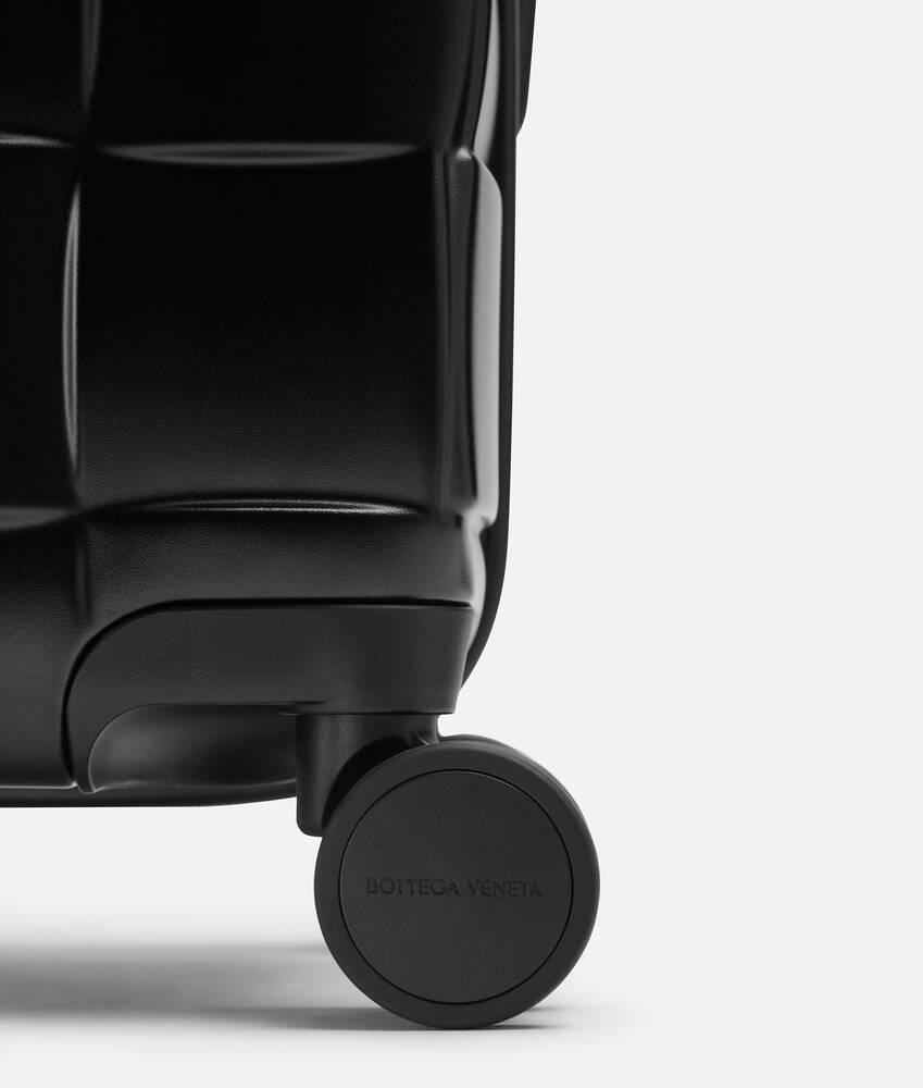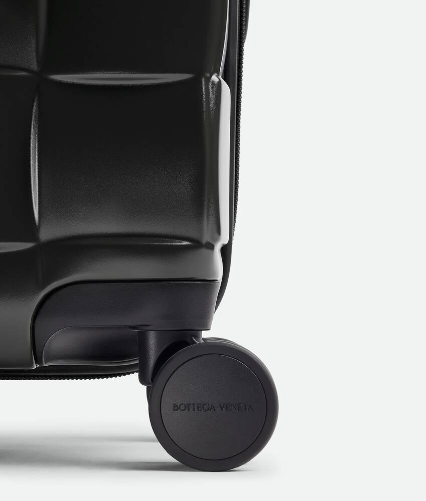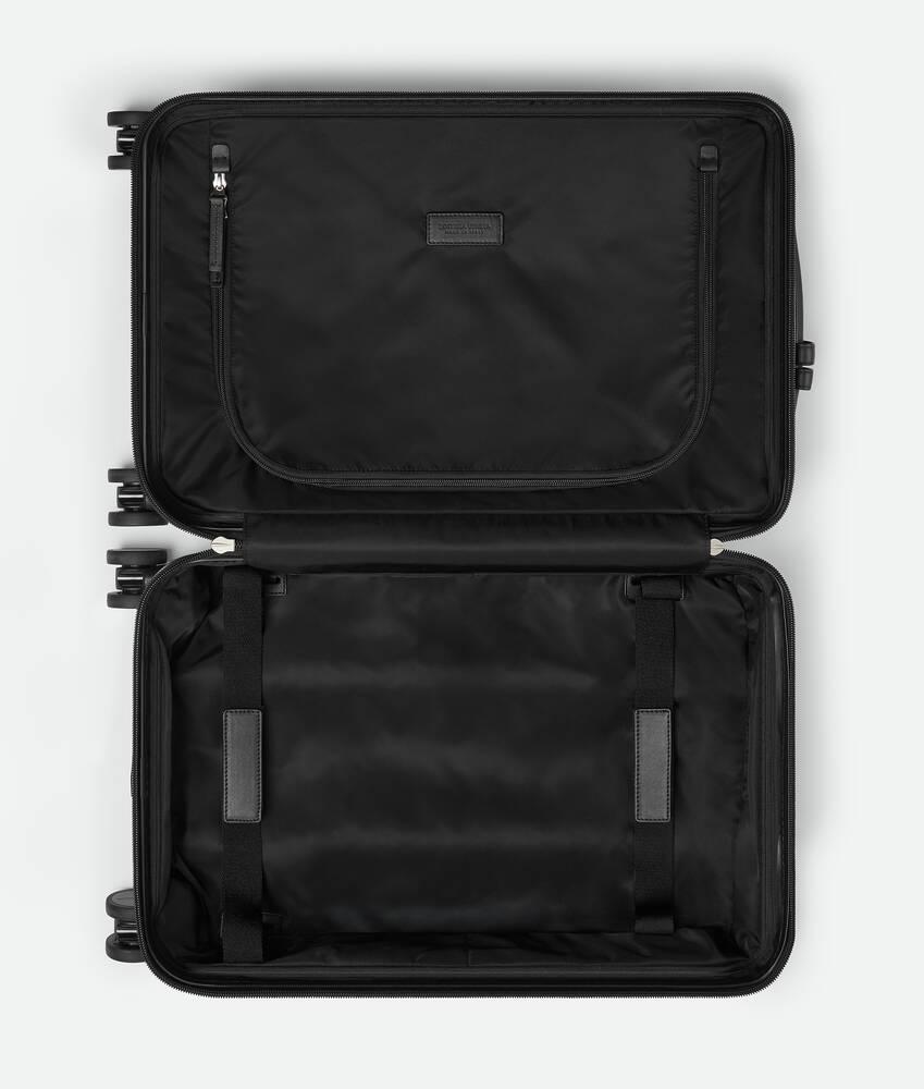 • Polycarbonate trolley with thermoformed Intreccio pattern• Cabin size• Volume: 38L • Calf leather handles and trims• Detachable Intrecciato leather tag holder• One zipped compartment and one strapped compartment featuring a detachable divider with a flat zipped pocket• Zip closure with TSA compliant lock system• Four 360° wheels and telescopic handle