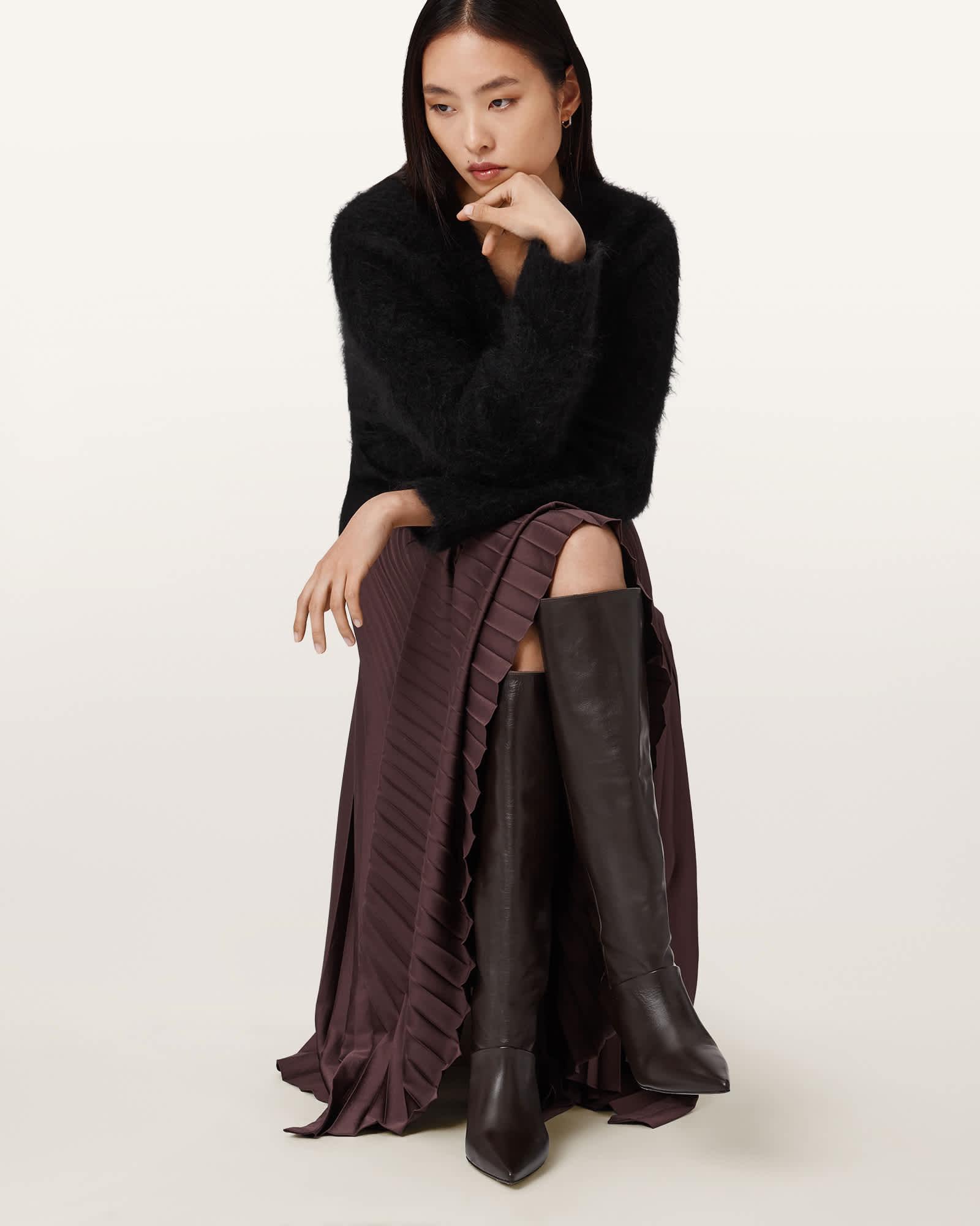 Odyssey Knee High Leather Boots Brown | ALLSAINTS US