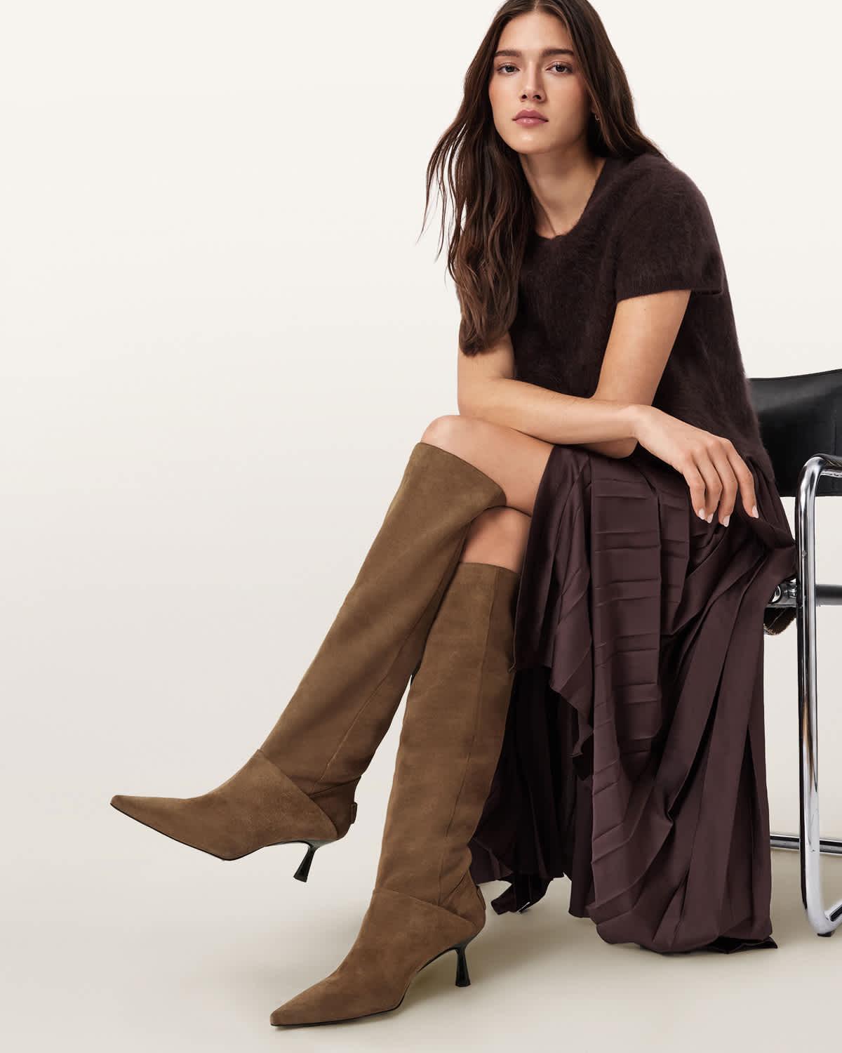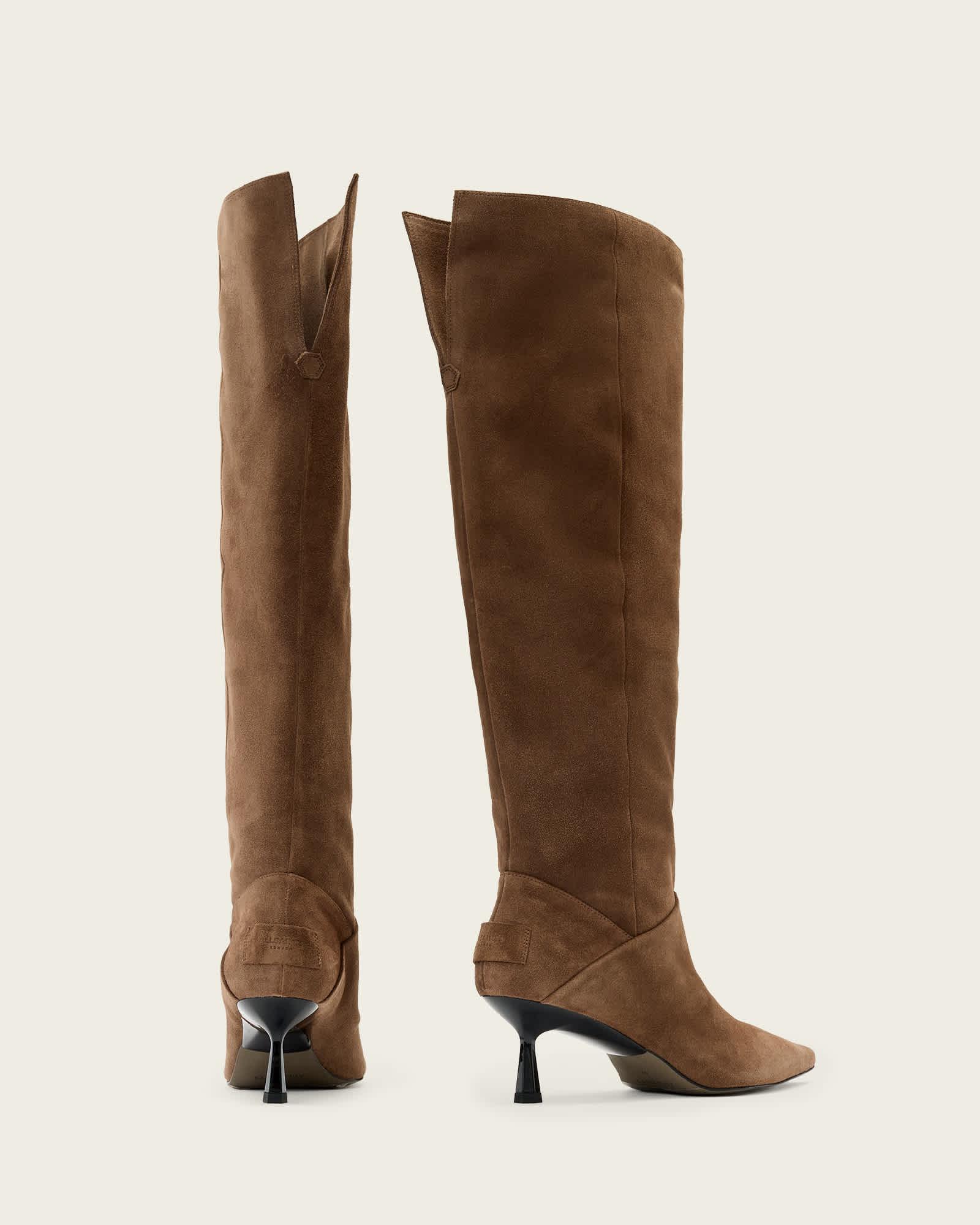 Odyssey Knee High Suede Boots PINE BARK BROWN | ALLSAINTS US