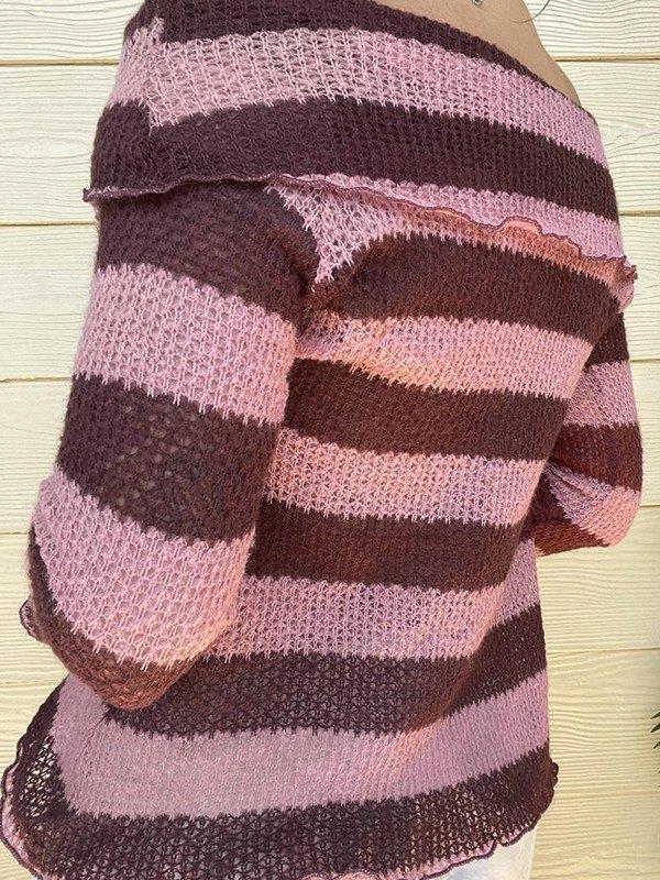 SHORT SLEEVE CONTRAST RIB STRIPED KNIT TOP
