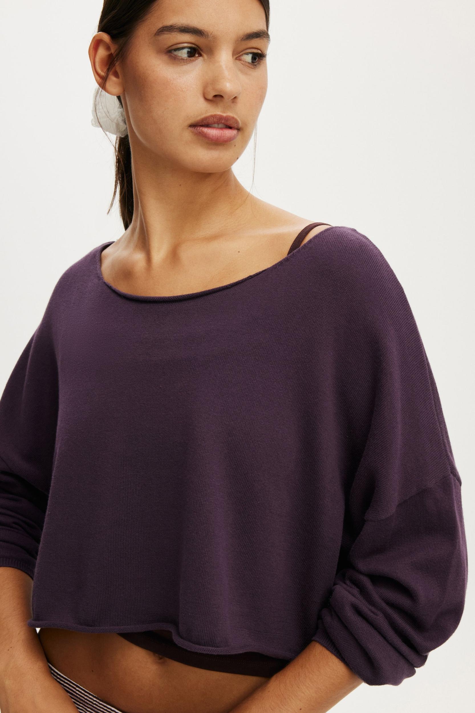 Off the shoulder knit jumper ,cropped body length ,long sleeves Main: 100% Cotton.